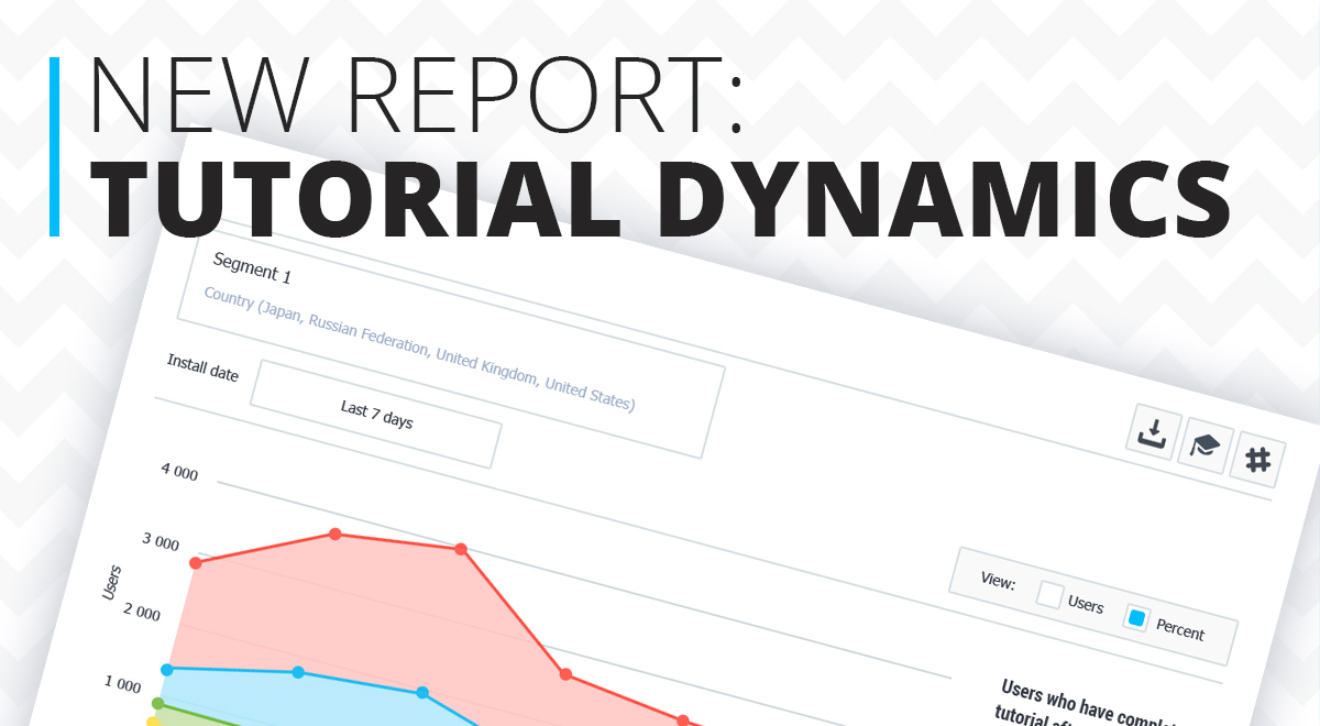 Tutorial Dynamics Report describes how quickly the users are passing the learning phase and identifies separately those who started the tutorial, but never finished it, and all those who skipped it.