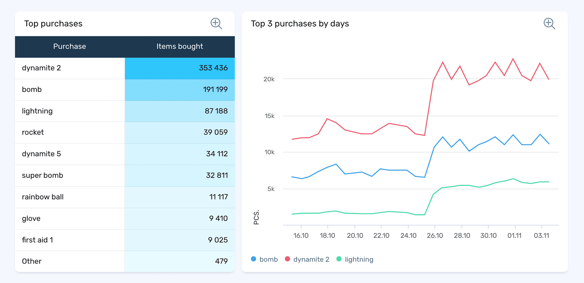 Understand where players convert to paying users, which items they buy, and how changes within the in-game balance impact revenue.