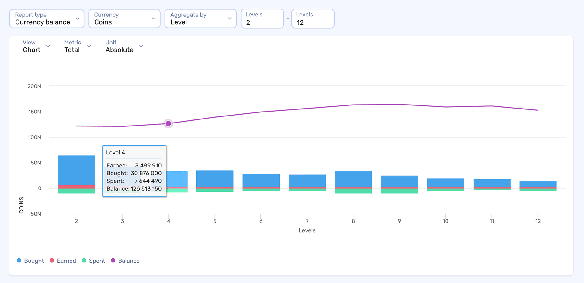 Get to know how users earn and spend virtual currency at each level to ensure a balanced in-game economy and improve player retention and paying share.
