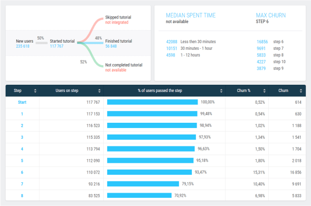 Assess each tutorial stage to see where users drop off, allowing you to identify areas that need adjustment better retention and onboarding. Compare different game versions to determine where the tutorial performs best.