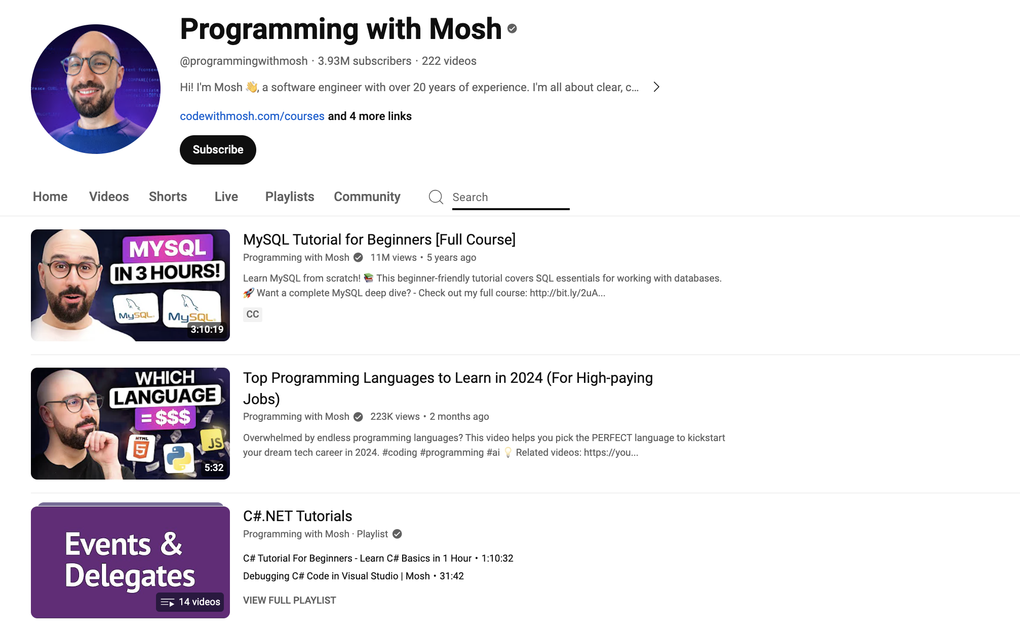Mosh Hamedani's YouTube channel provides comprehensive tutorials covering a wide range of programming topics, including SQL. Mosh's tutorials are known for their clarity and depth, making them suitable for both beginners and experienced developers. His tutorials provide a solid foundation in database management and querying techniques, essential for anyone looking to master the query language.