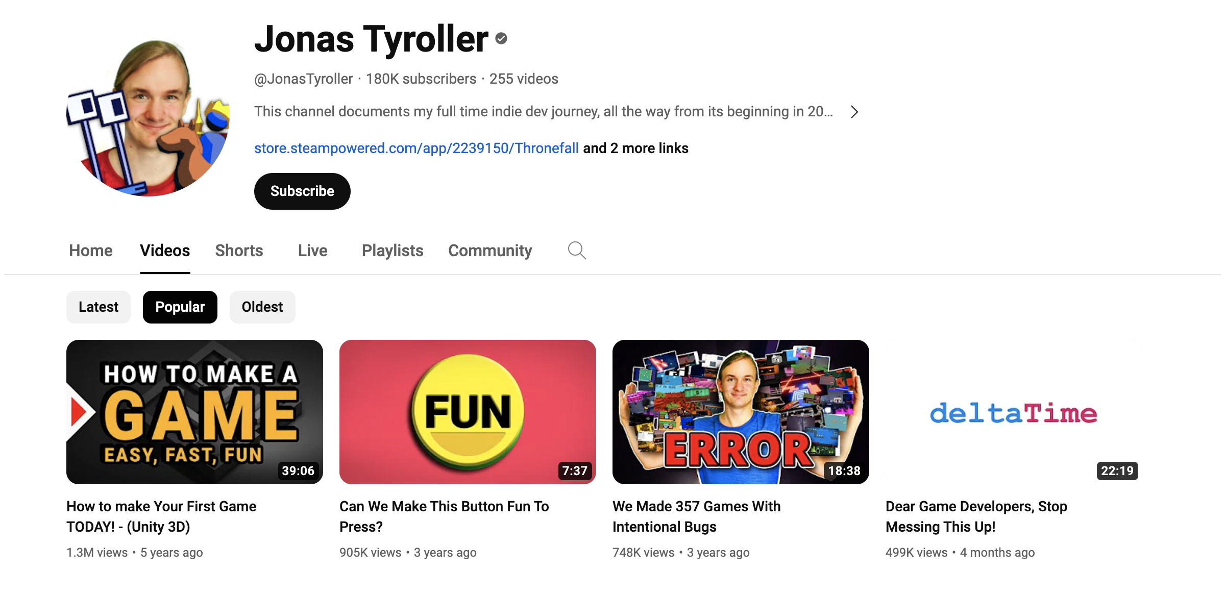 On his channel, Thomas usually presents his current projects, as well as detailed demonstrations of the development process. If you want to go deeper into game development, you can check out his videos and tutorials.