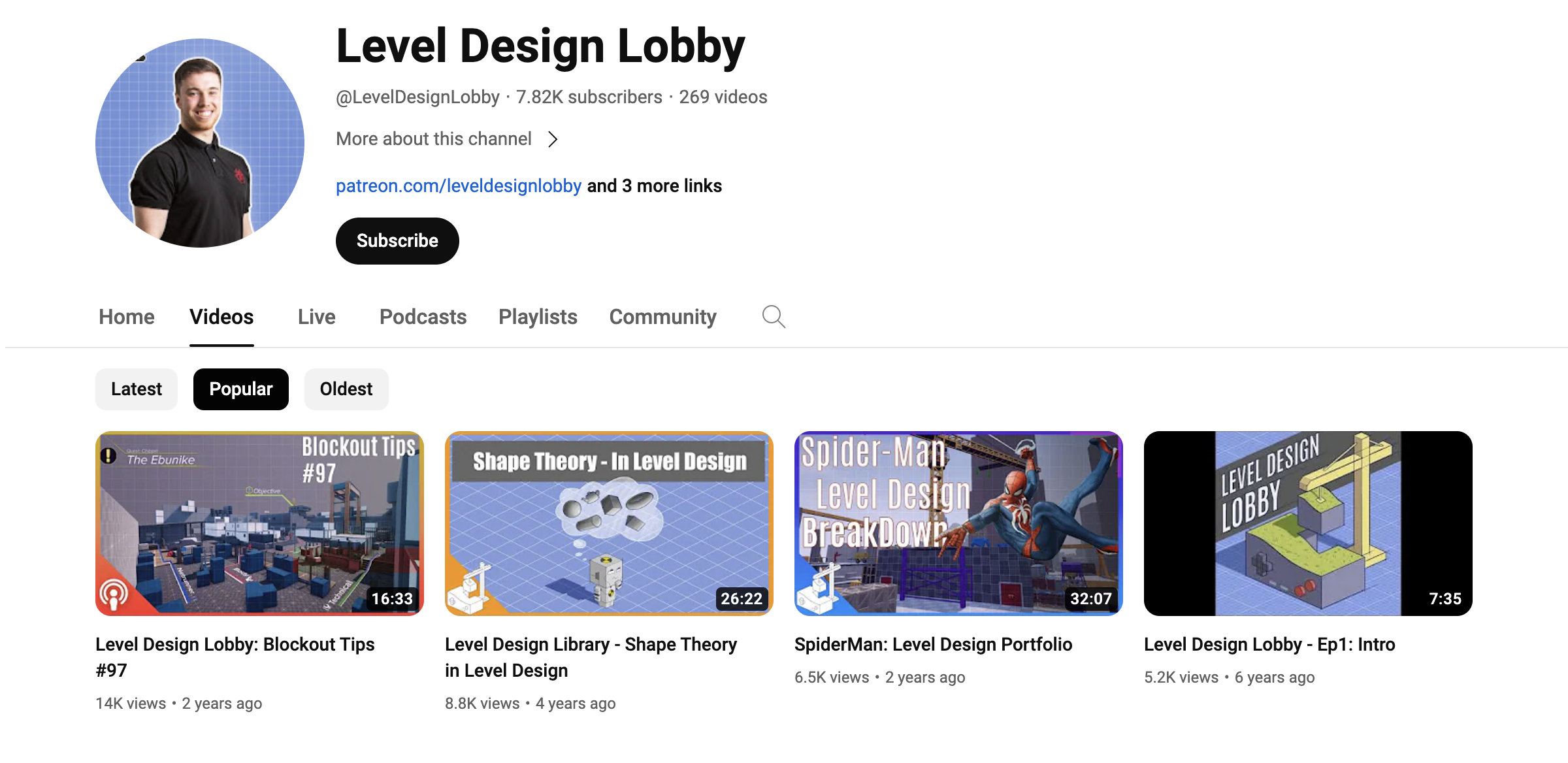 The Level Design Lobby channel is created and maintained by Max Pears, an experienced level designer. He shares his experience creating levels for games, as well as the principles and features of this field.