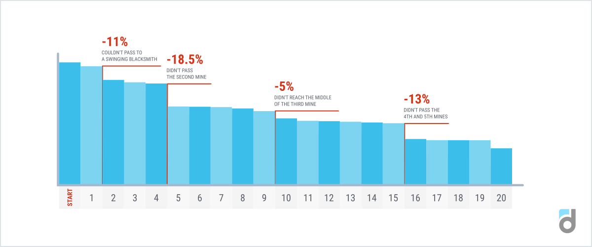 - After the third mine, people lost interest and motivation to go further, as since this moment the game was not leading them by hand anymore. The developers expected that players would want to reach the end of the floor by themselves.