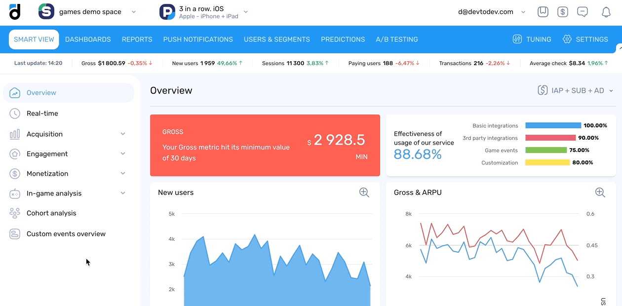 Start using the power of devtodev to improve your game analysis and take your development experience to new heights. With these insights, you can navigate the competitive gaming landscape and foster long-term success.