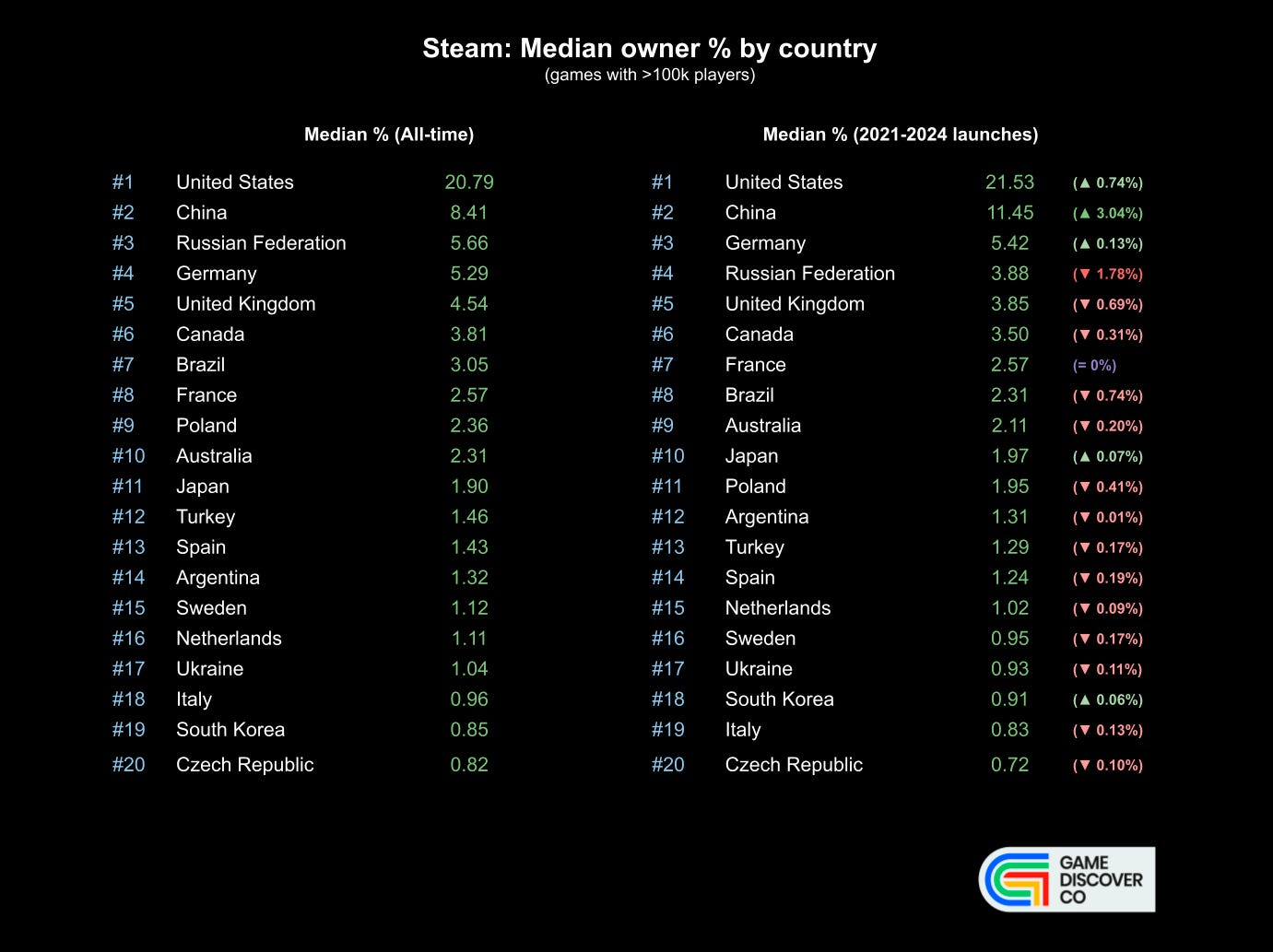 ❗️GameDiscoverCo notes that the figures for China may be underestimated due to market specifics.