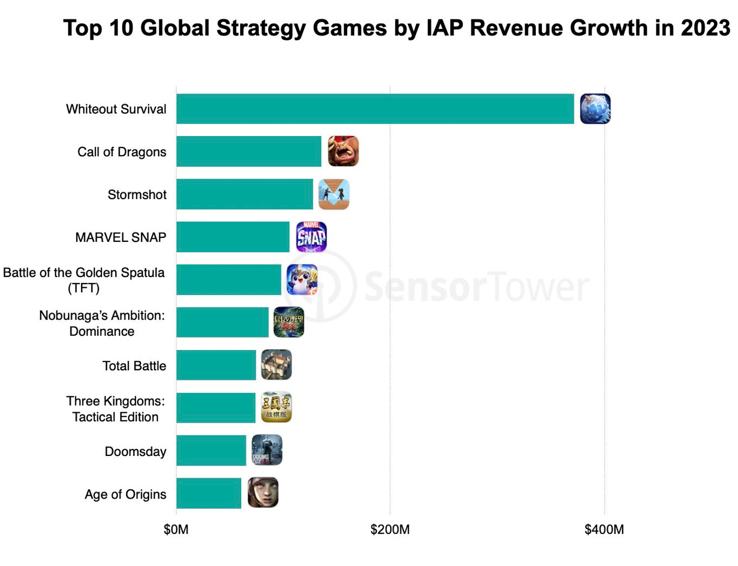 • Whiteout Survival stands out among competitors. The game earned $370 million from IAP in 2023, making it the fastest-growing game in the genre.