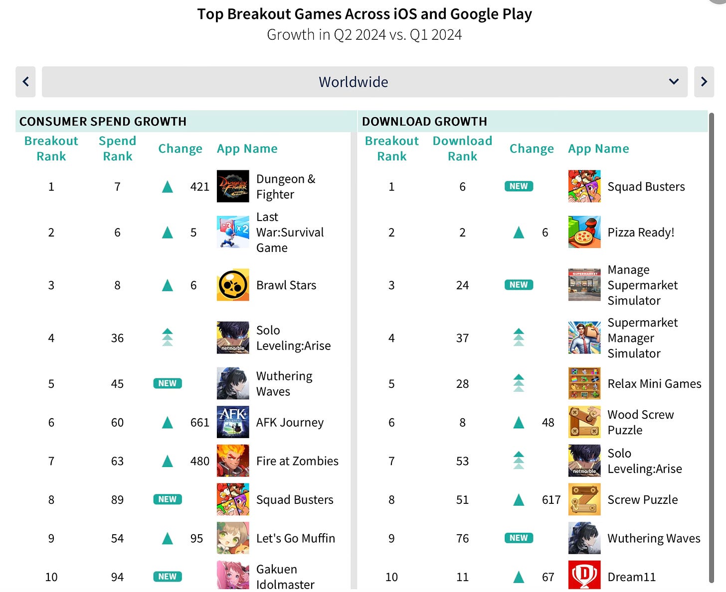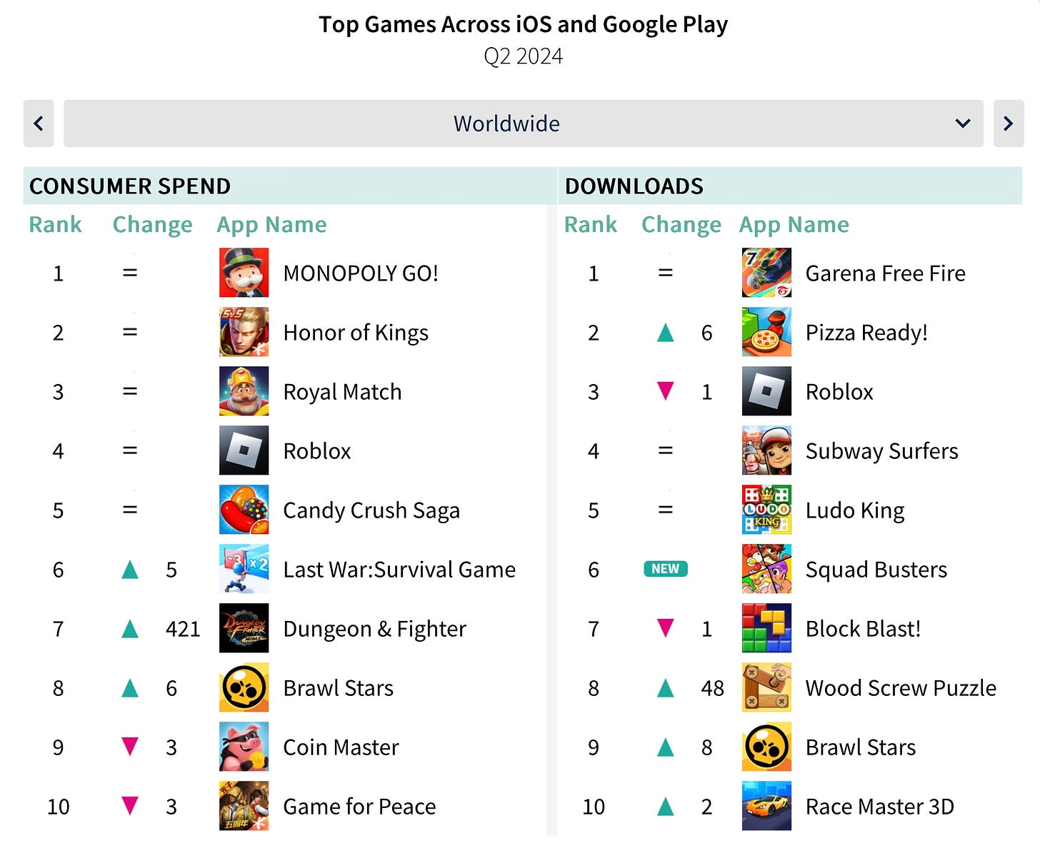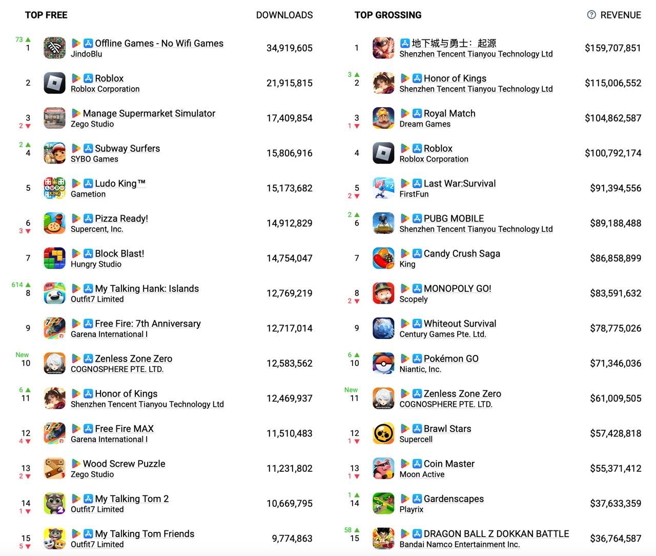 • Mobile Legends: Bang Bang also saw significant growth in the top 10, influenced by esports.