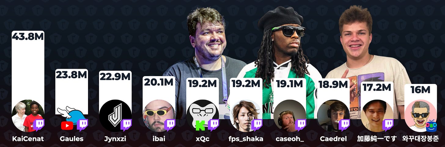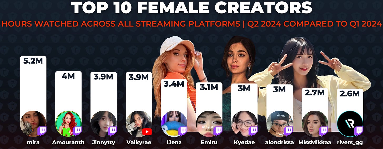 • KaiCenat was the most popular streamer in Q2 2024, with 43.8 million hours watched.