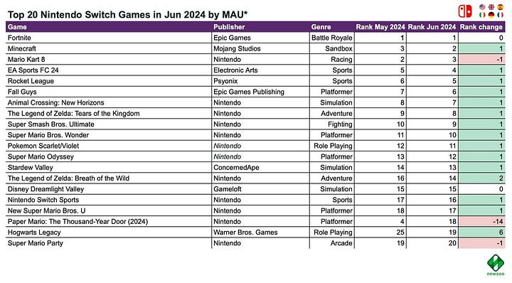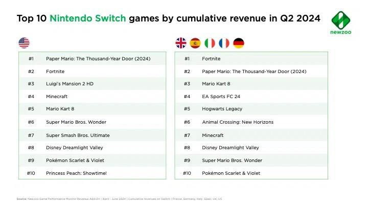 • Nintendo Switch - Fortnite accounted for 15.6% of all game revenue on the Switch in the USA in the second quarter. Paper Mario: The Thousand-Year Door also performed well.