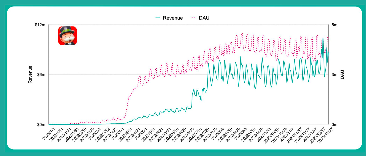 • According to Sensor Tower, MONOPOLY GO! earned more than $1.2 billion from in-game purchases in 2023, with the project's MAU exceeding 17 million people.
