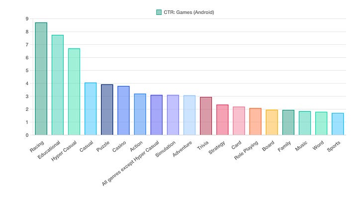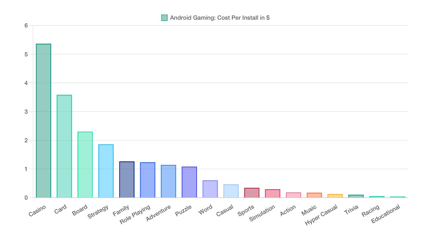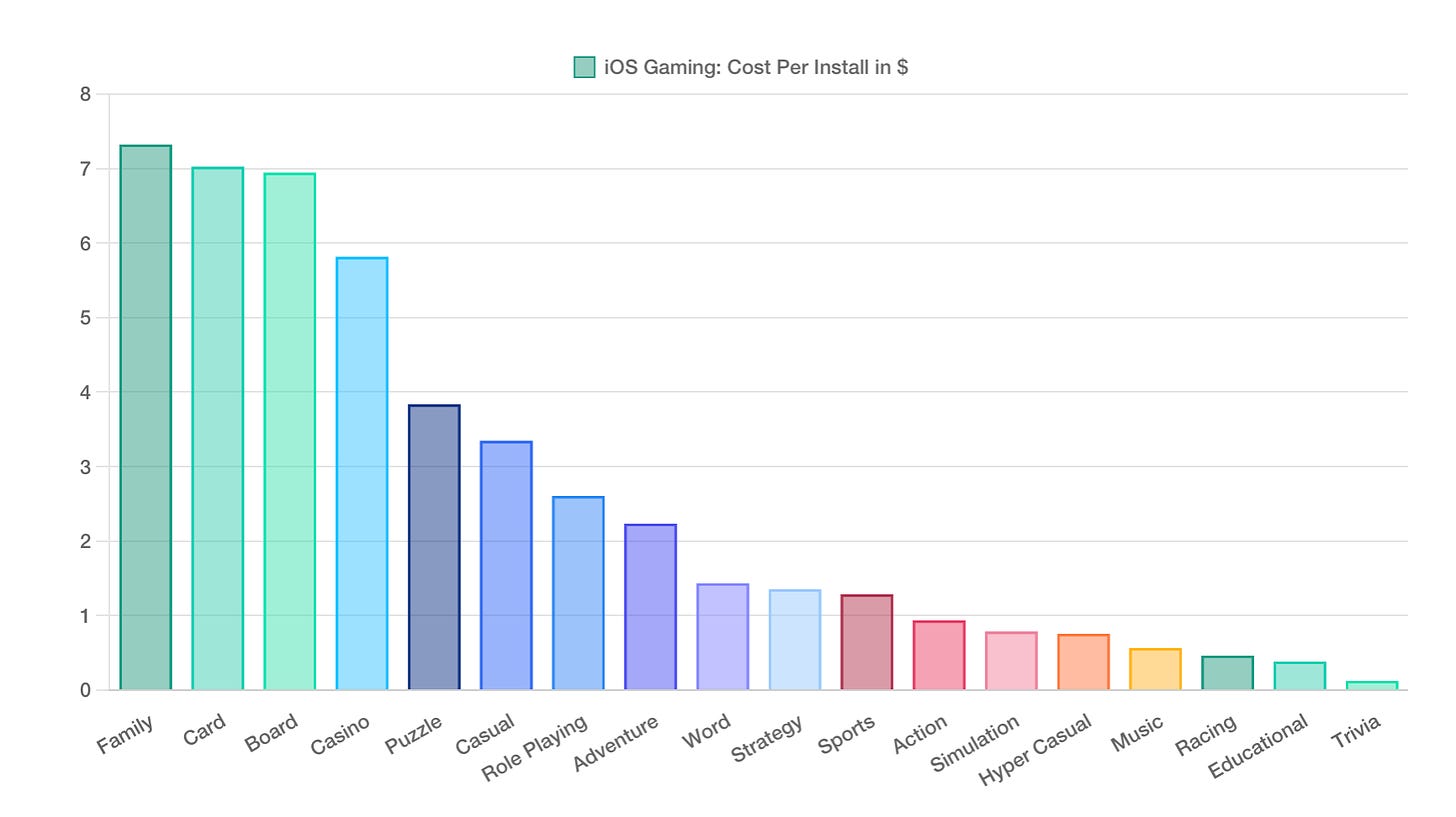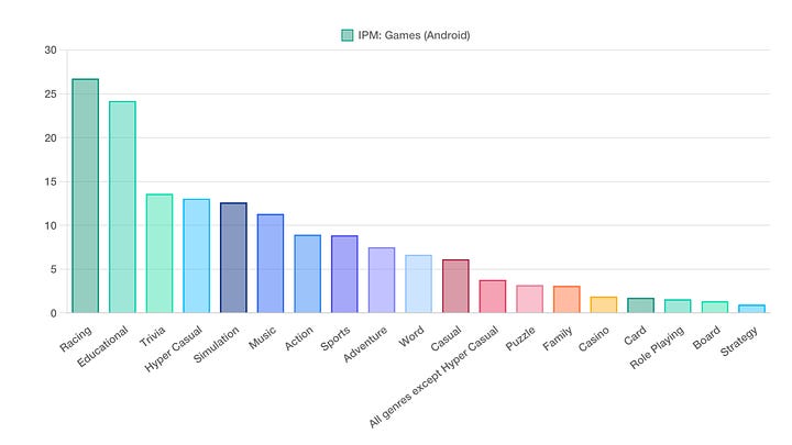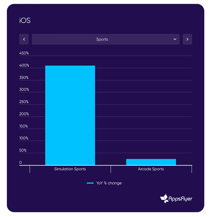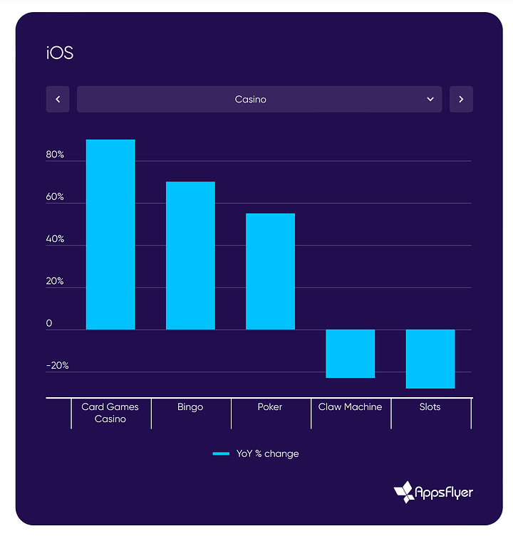 • The strongest growth in non-organic installs on iOS was seen in sports games, racing games, and merge games. Casino and bingo games are also growing.