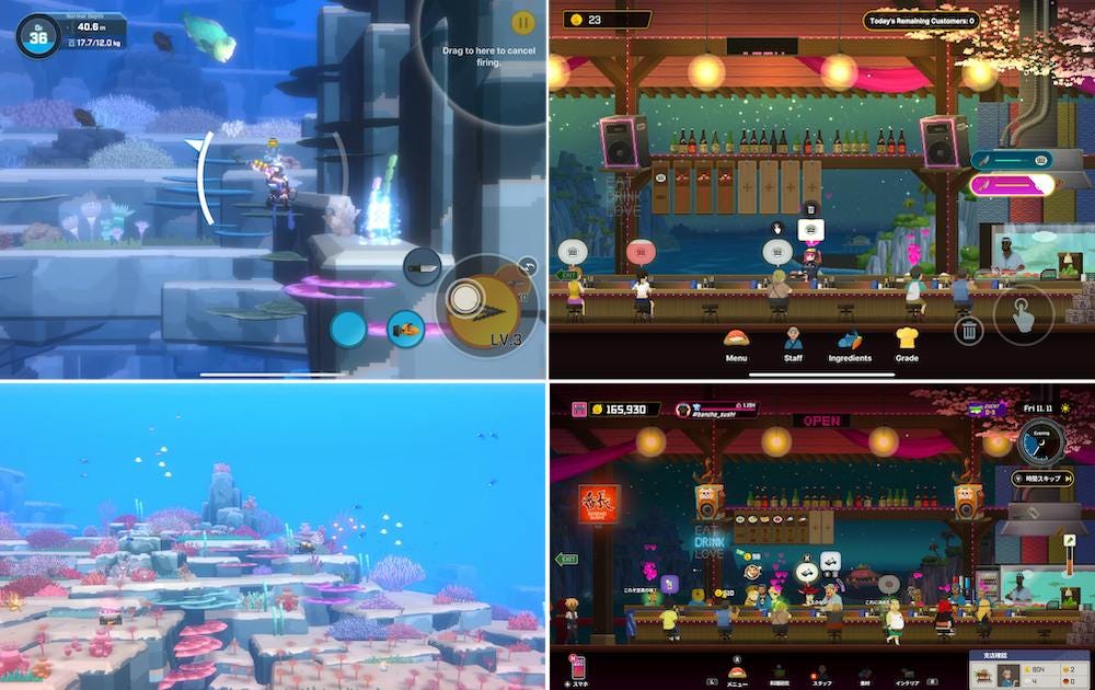 • Goddess of Victory: NIKKE launched a collaboration with Dave the Diver. Interestingly, the developers recreated the gameplay of Dave the Diver within the game, where players need to catch fish and manage their own restaurant. In November 2023, the developers of Goddess of Victory: NIKKE added a mini-game in the style of Vampire Survivors. It seems the experiment was successful.