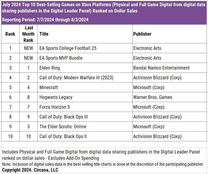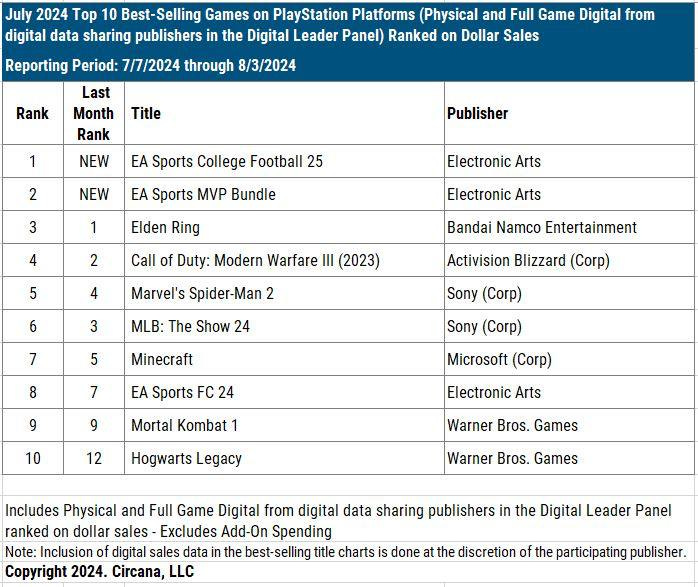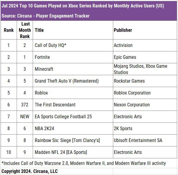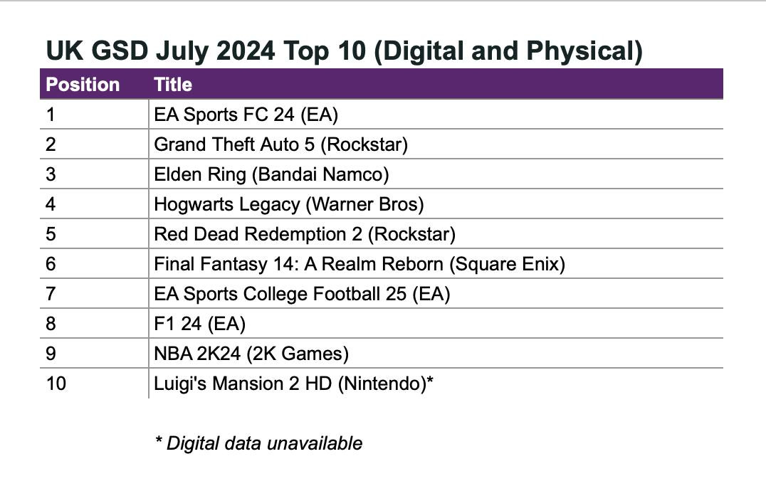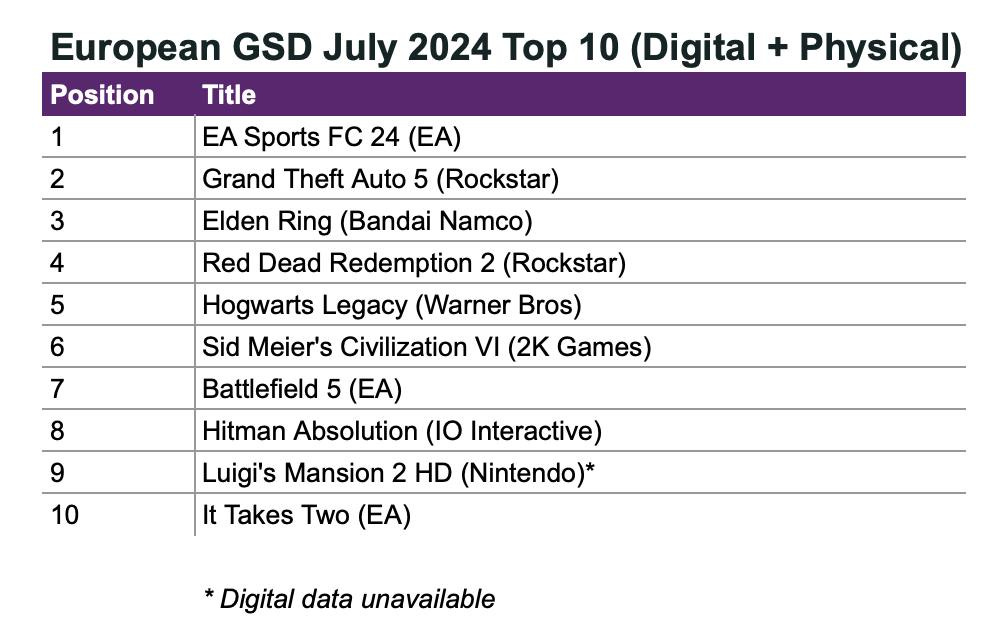 • The first two places are held by Fortnite and EA Sports FC 24.