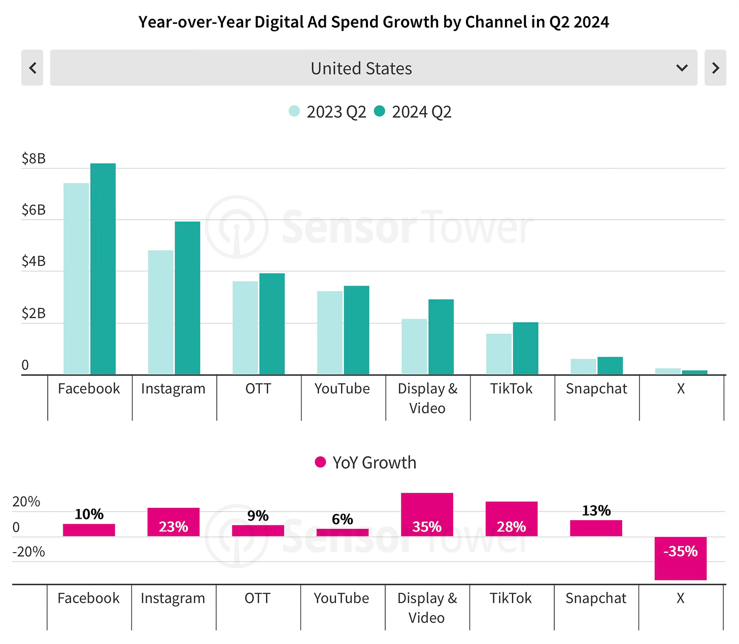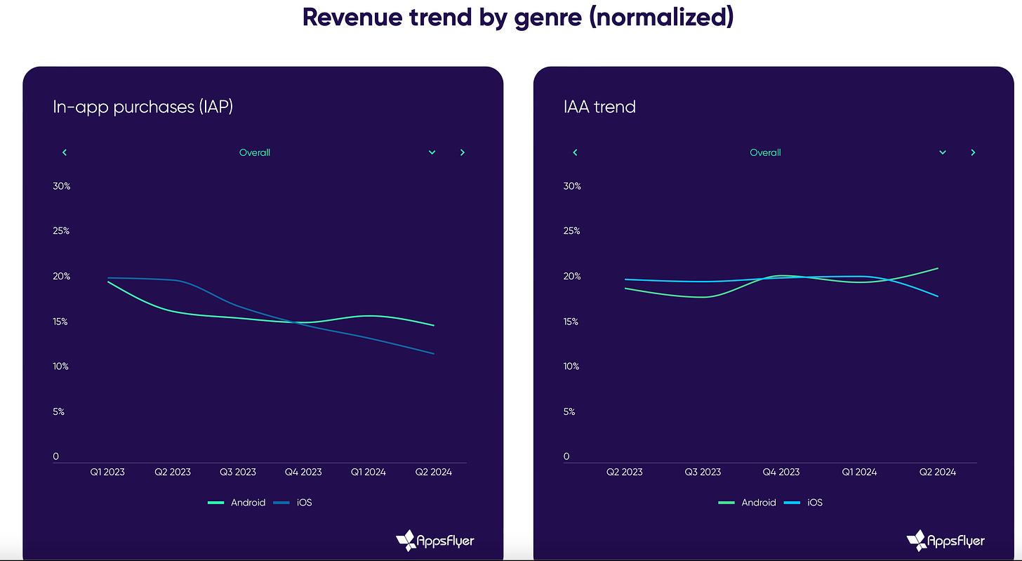 3. Game ad revenue increased by 4% in Q2 2024 compared to Q2 2023. Android grew by 12%, while iOS dropped by 10%. Year-over-year, ad revenue grew by 3%. However, IAP revenue decreased by 15% on Android and by 35% on iOS.