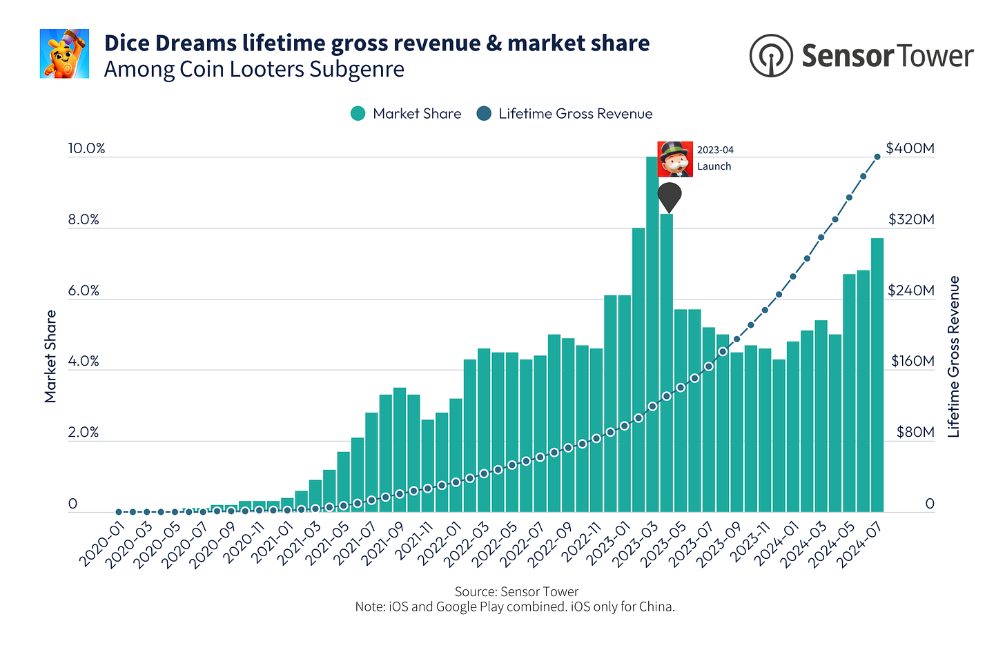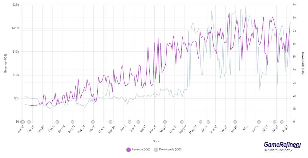 • SuperPlay, the creators of Dice Dreams, continue to grow revenue for Domino Dreams. In July, the game made it into the top 100 for revenue on iOS.