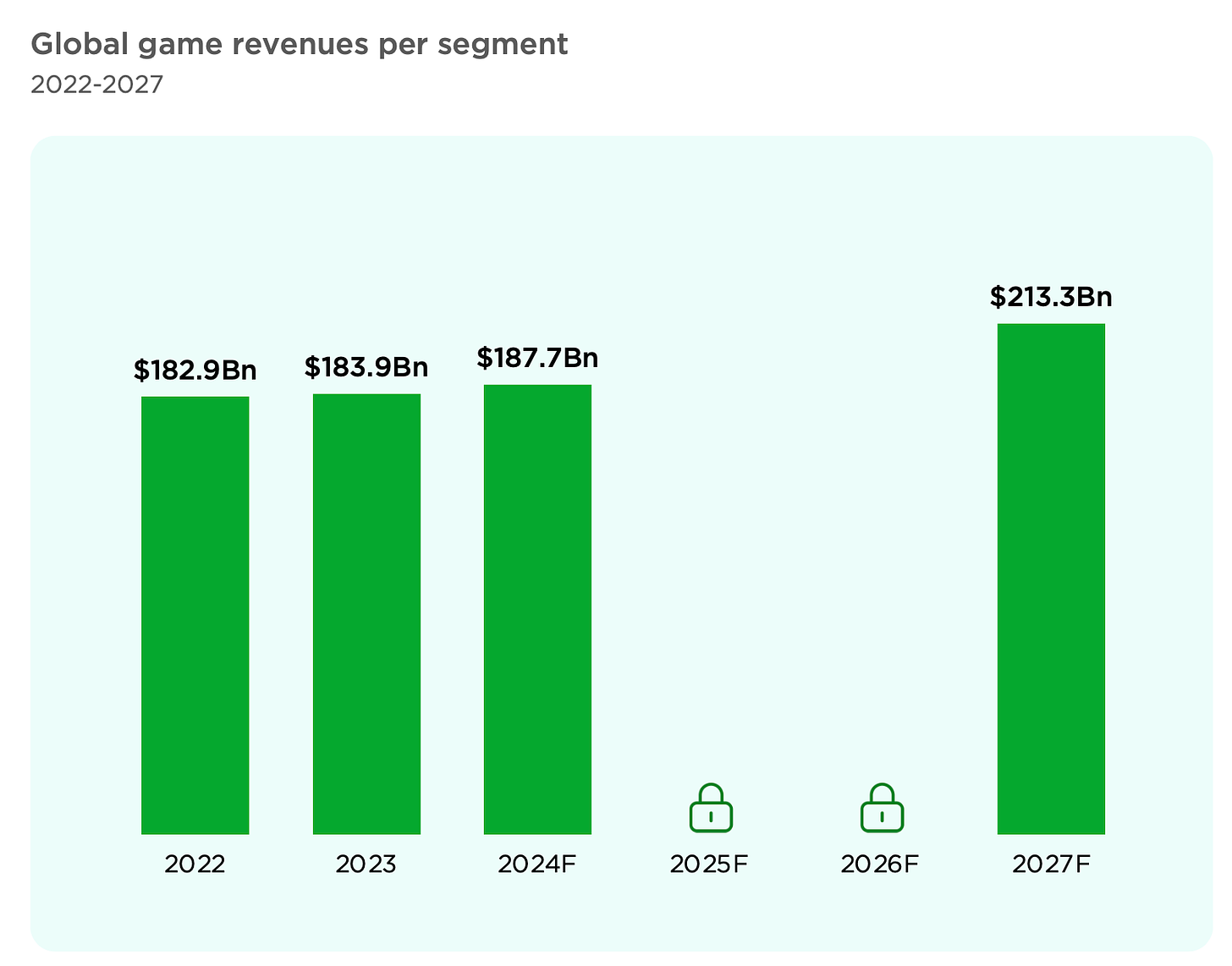 • Growth compared to last year was 1%. However, Niko Partners expects a decline in 2024 by 2.9% to $29.2 billion.