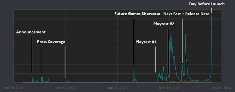• There are 7 new games in the top 20 by revenue. In addition to Helldivers II and Palworld, the list includes Dragon’s Dogma 2 ($108 million), Manor Lords ($56 million), Enshrouded ($49 million), Granblue Fantasy: Relink ($40 million), and Tekken 8 ($40 million). In some sense, Ghost of Tsushima: Director’s Cut ($48 million) can be considered a new game, as it had not been released on PC before.