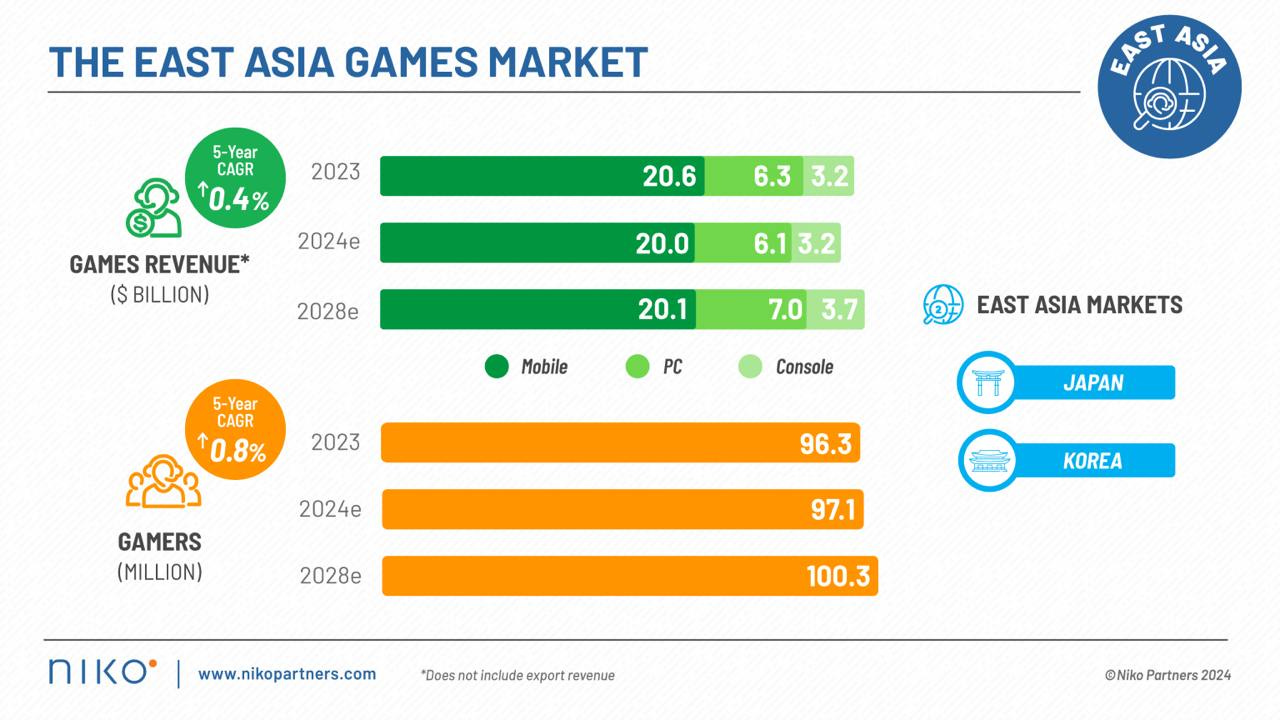 Japan and South Korea in Niko Partners' taxonomy are classified as East Asia.