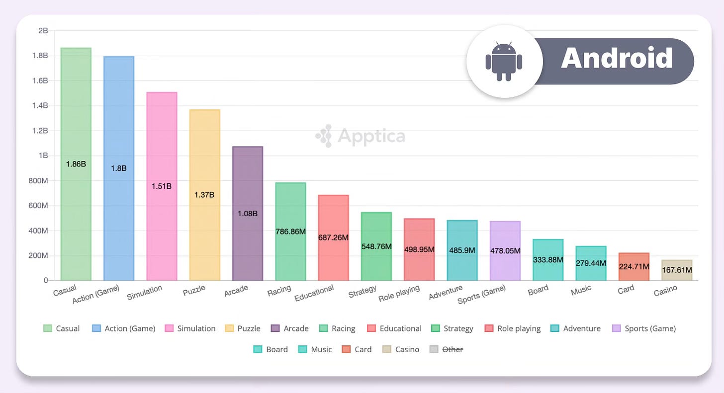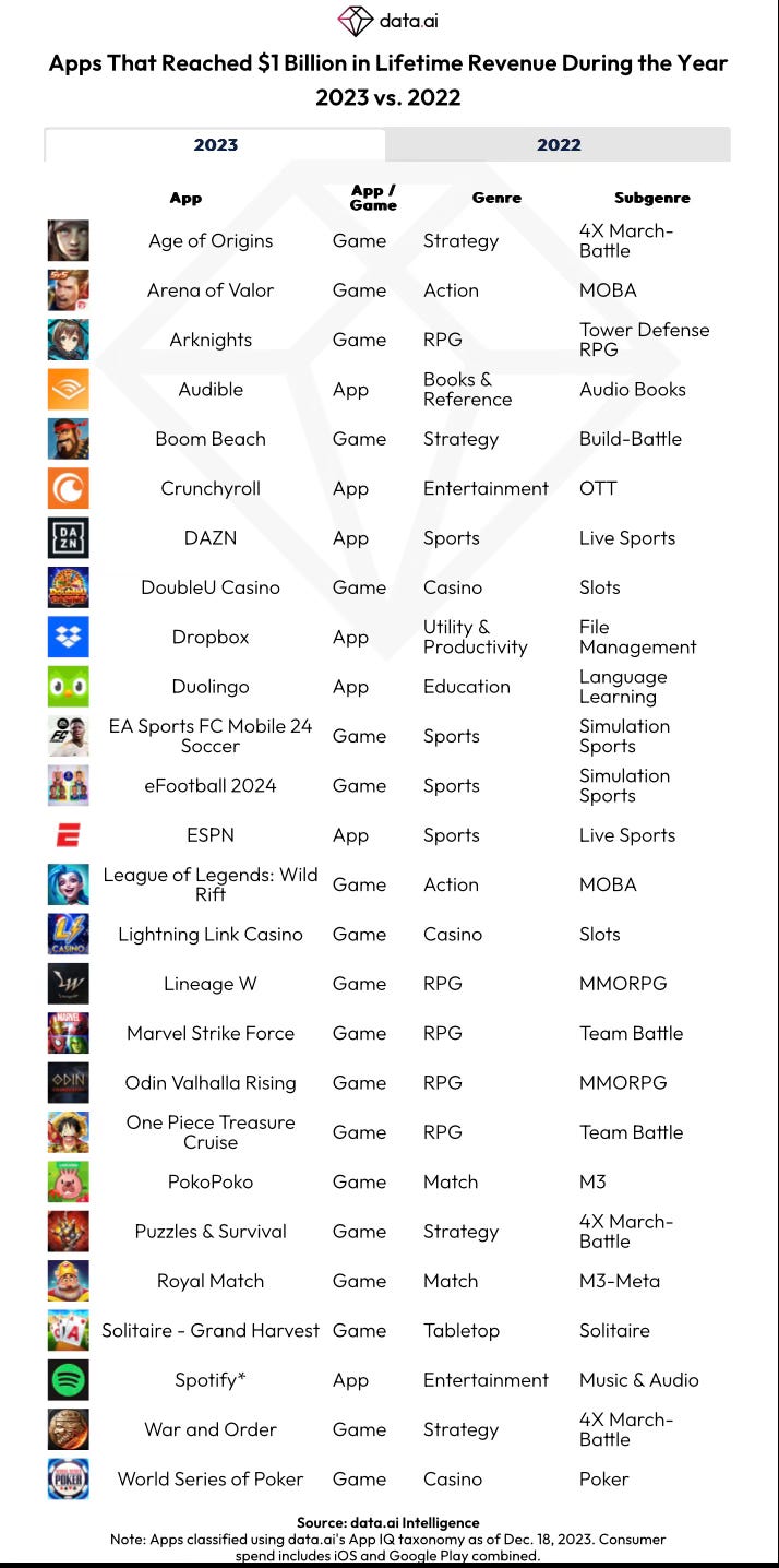 - data.ai: In 2023, 19 mobile games surpassed the $1 billion revenue mark