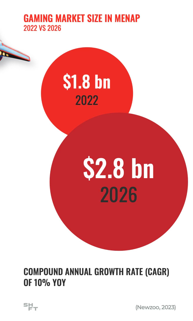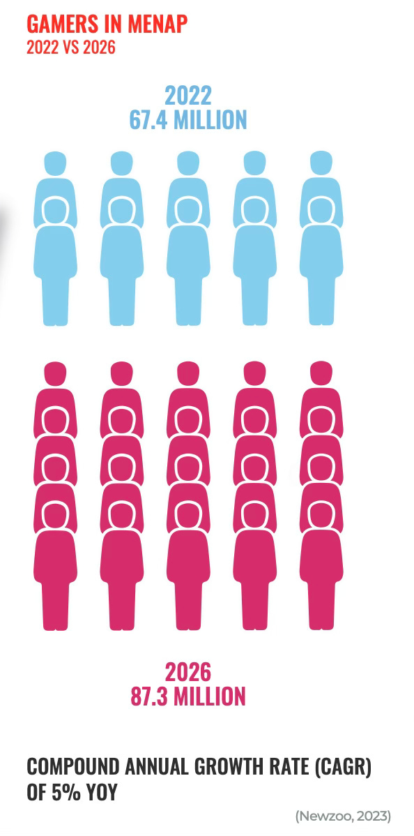 Newzoo presents market figures; for mobile projects - data.ai. MENAP stands for the Middle East, Africa, and Pakistan markets.