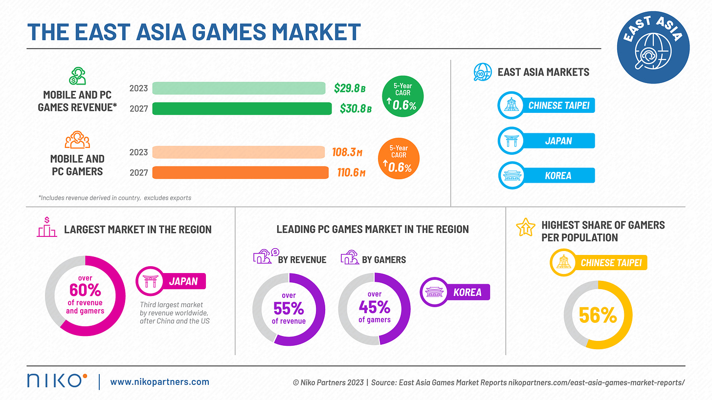 - Niko Partners: The markets of South Korea, Japan, and Chinese Taipei will grow to $30.8B by 2027