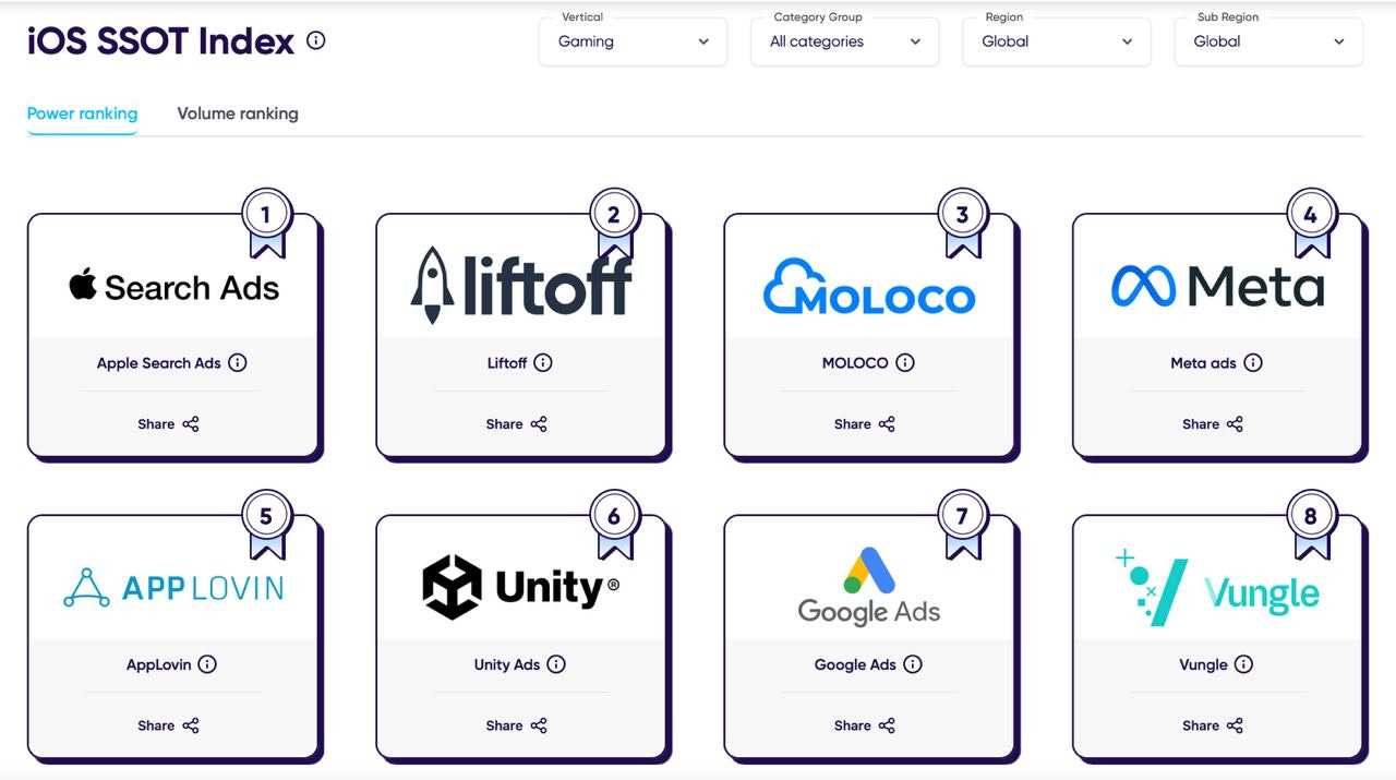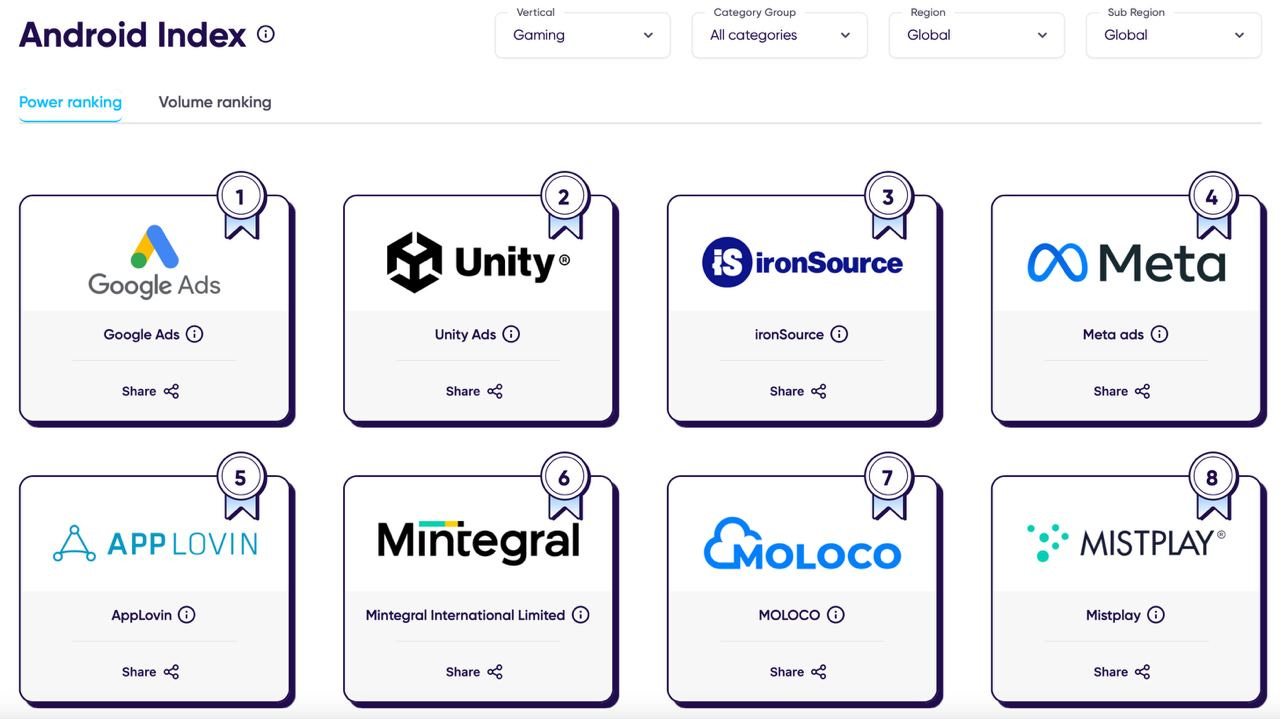 ironSource significantly improved compared to the previous index, taking the third position (previously sixth). The channel works excellently for hyper-casual projects.