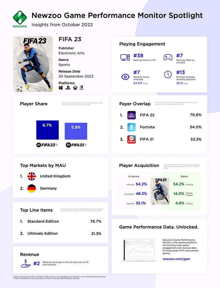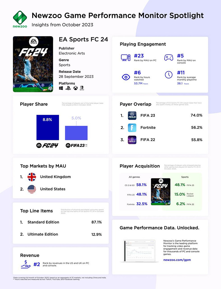 - Newzoo: Comparison of Launches of EA Sports FC 24 and FIFA 23