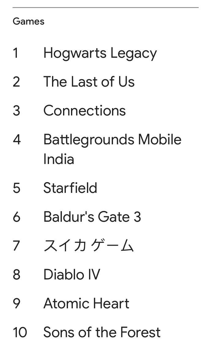 - Google: The most popular games in Search in 2023