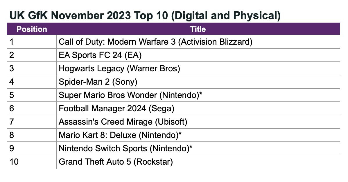- GSD & GfK: Call of Duty was unable to save the British market from decline in November 2023