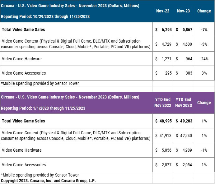 - Circana: The American Gaming Market Declined by 7% in November