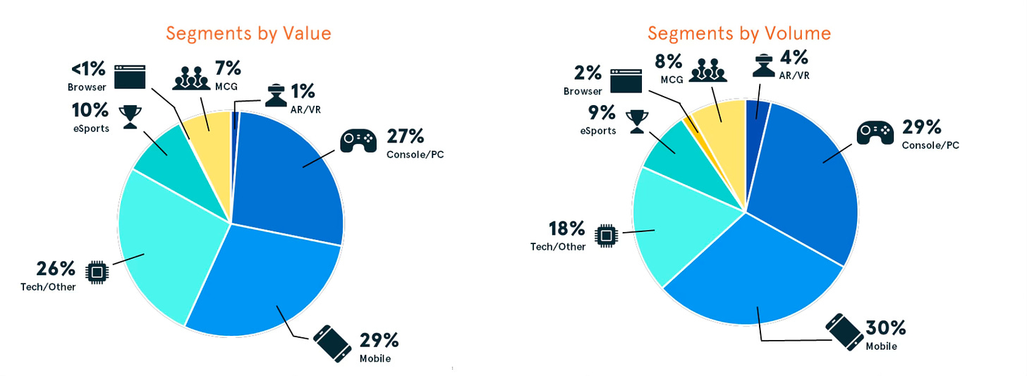 Most investments by volume were made in mobile studios (29%), PC/console studios (27%), and technology (26%).