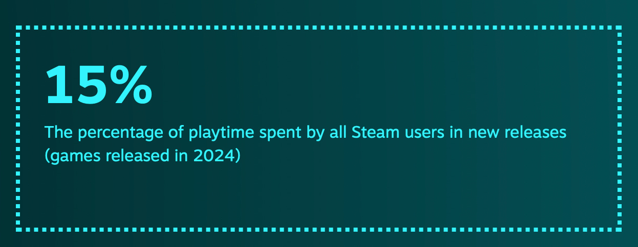 • Games released this year accounted for only 15% of total playtime on Steam.