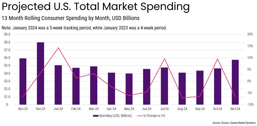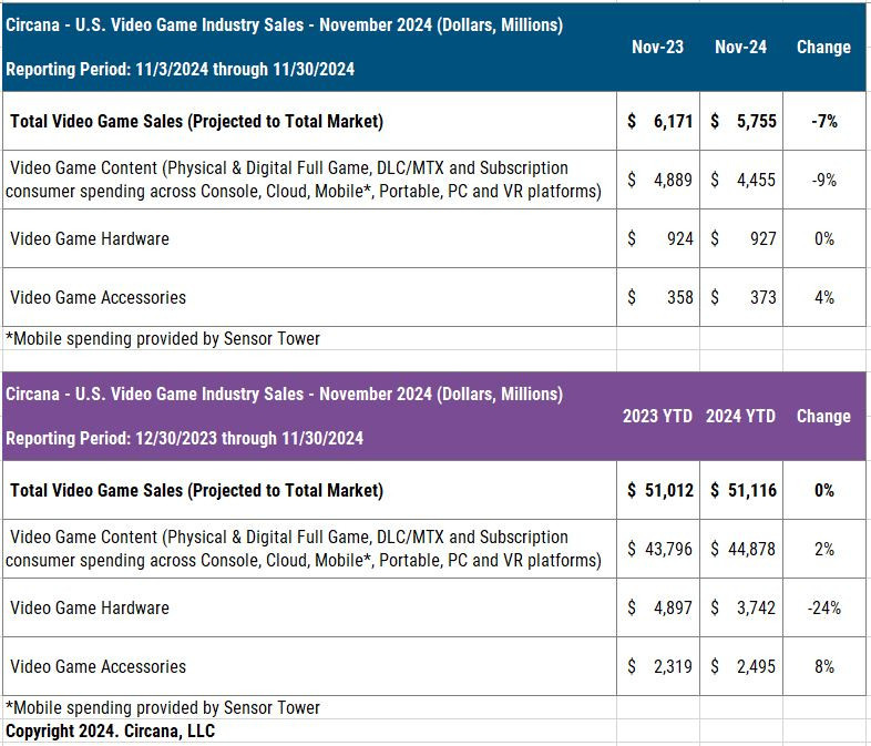 • During this period, 9.4 million gaming systems were sold - significantly less than 11.8 million for 11 months of 2023.