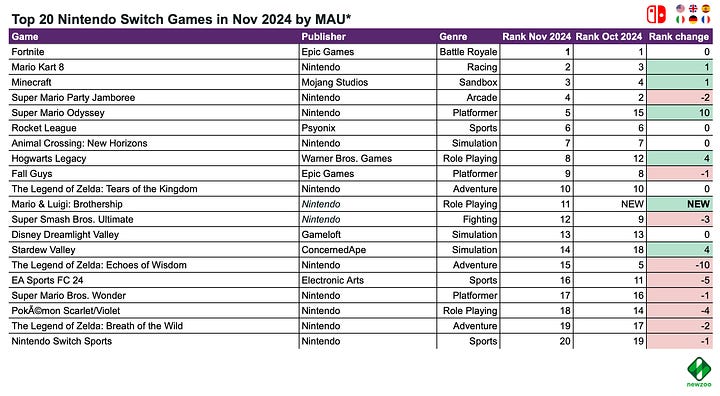 • In fourth (third) place - Mario and Luigi: Brothership with 88k copies.