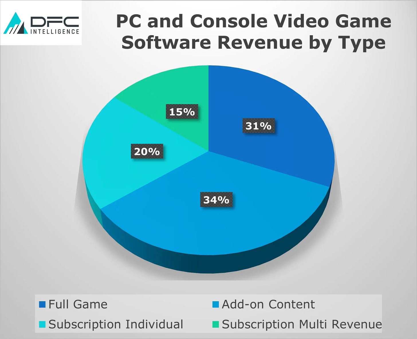 • When considering the structure of payments in PC and console games, DFC Intelligence believes that people will buy more in-game items and subscriptions. Regarding the latter, individual subscriptions (like in WoW) are expected to grow faster than subscription services like Game Pass.