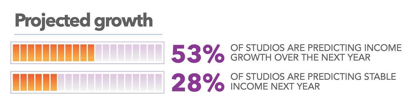 • Regarding revenue, studios are rather optimistic. 53% believe they can increase their income in 2025; 28% plan to stay at least at the same level.