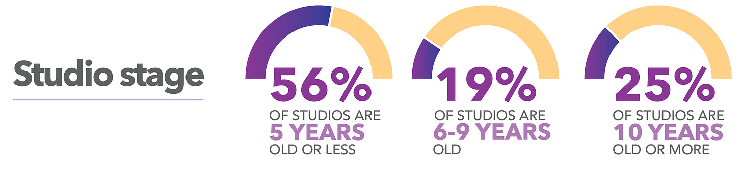 • 25% of studios in the country are over 10 years old. 19% are between 6 and 9 years old. 56% have been in the market for up to 5 years.