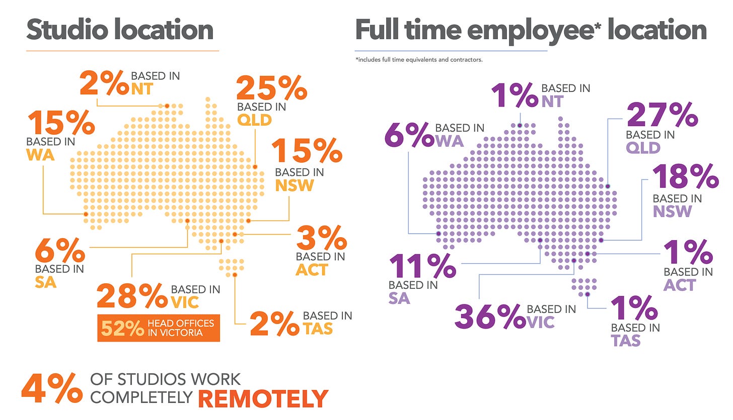 • 2,465 people are employed in Australian gaming companies. Despite all the industry problems, this is 0.3% more than last year.