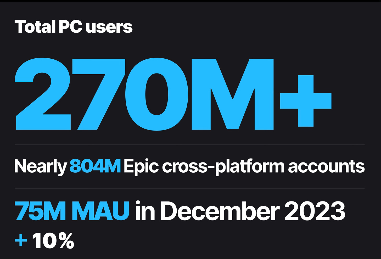 The total number of accounts in the Epic ecosystem reached 804 million.