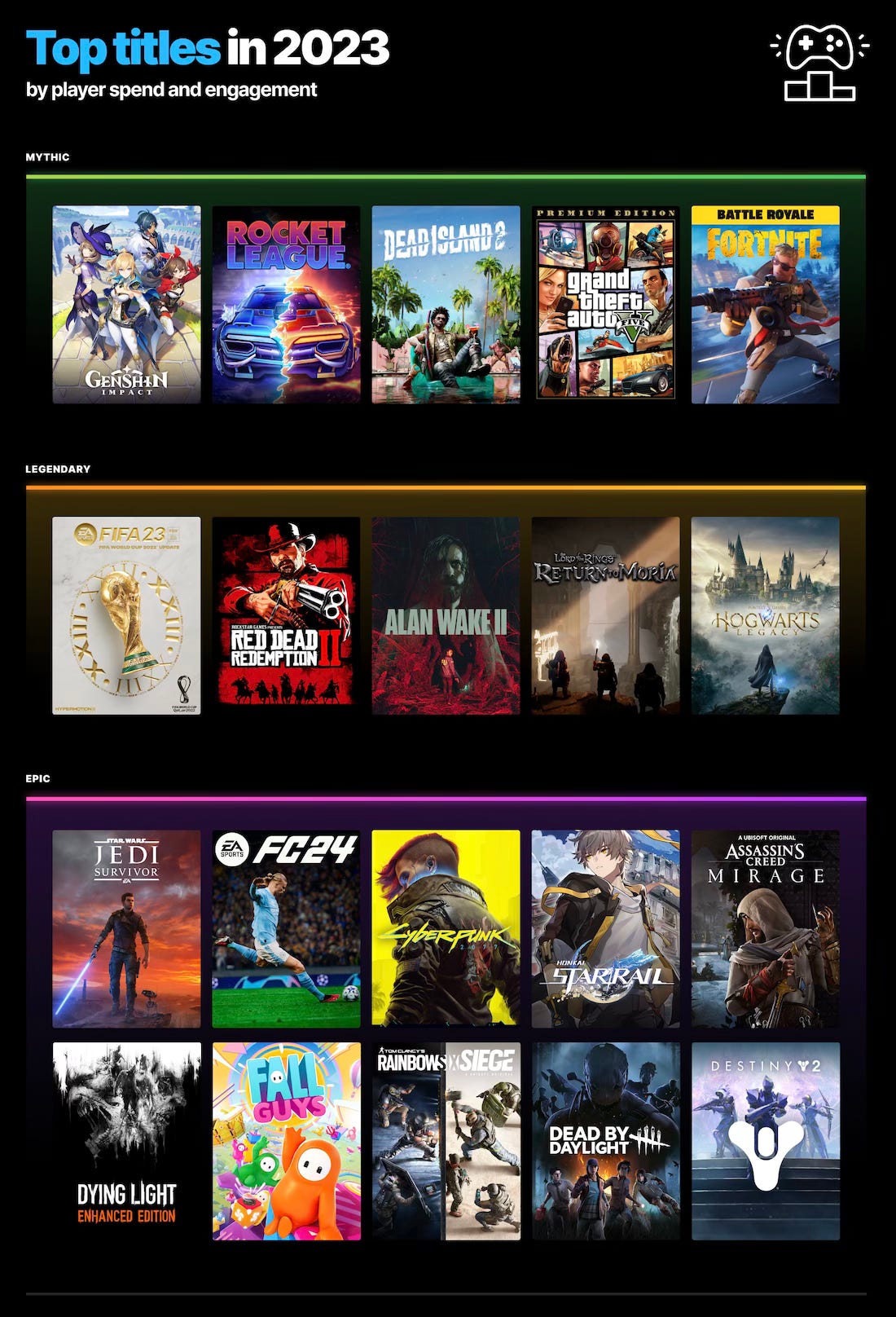Genshin Impact, Rocket League, Dead Island 2, Grand Theft Auto V, and Fortnite were the most successful projects on the platform in 2023.