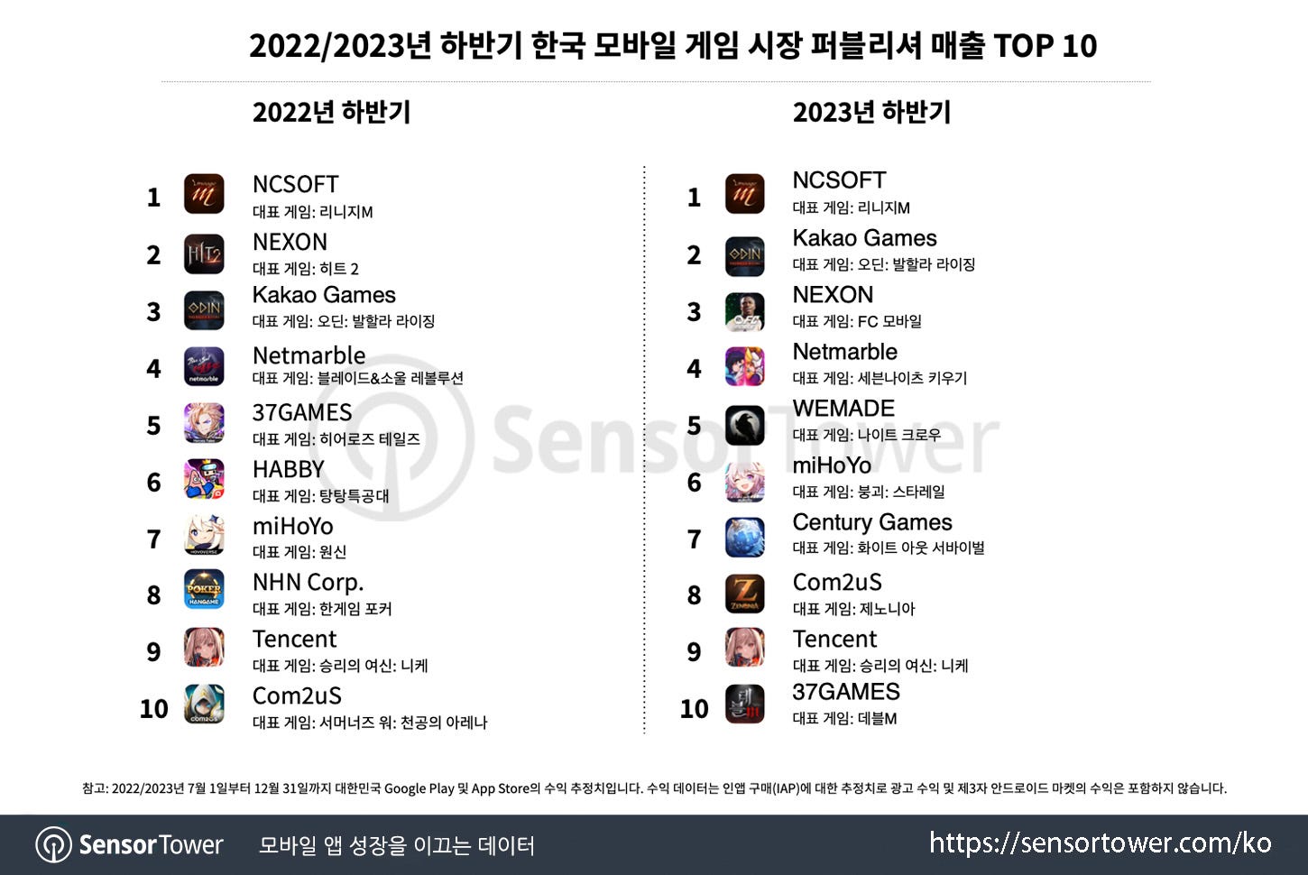 - Sensor Tower: State of the South Korean Mobile Gaming Market in the H2 2023