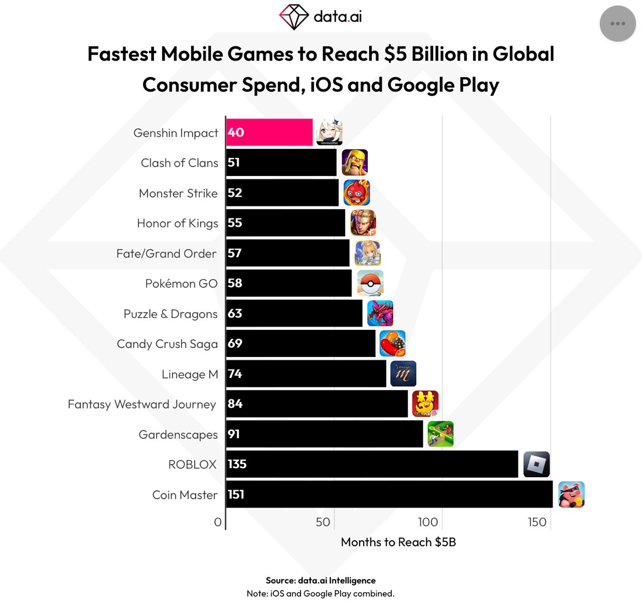 - data.ai: Genshin Impact became the fastest game in history to earn $5B on mobile devices