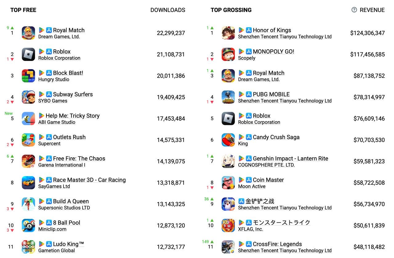 - AppMagic: Top Mobile Games by Revenue & Downloads in January 2024