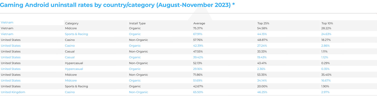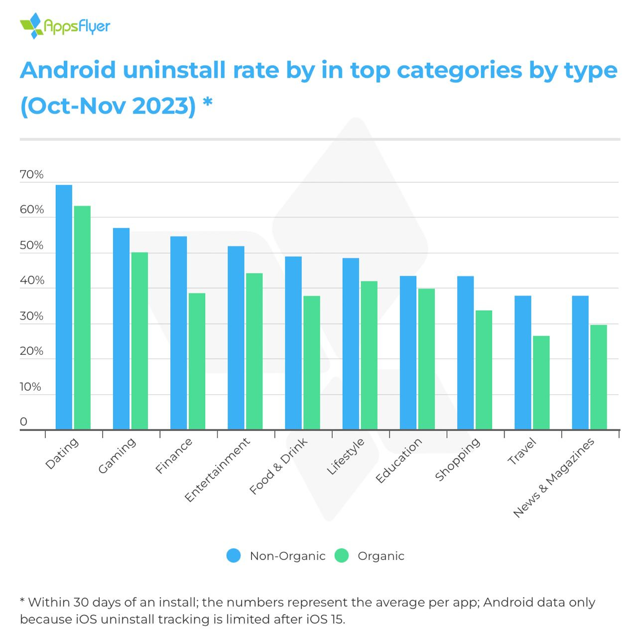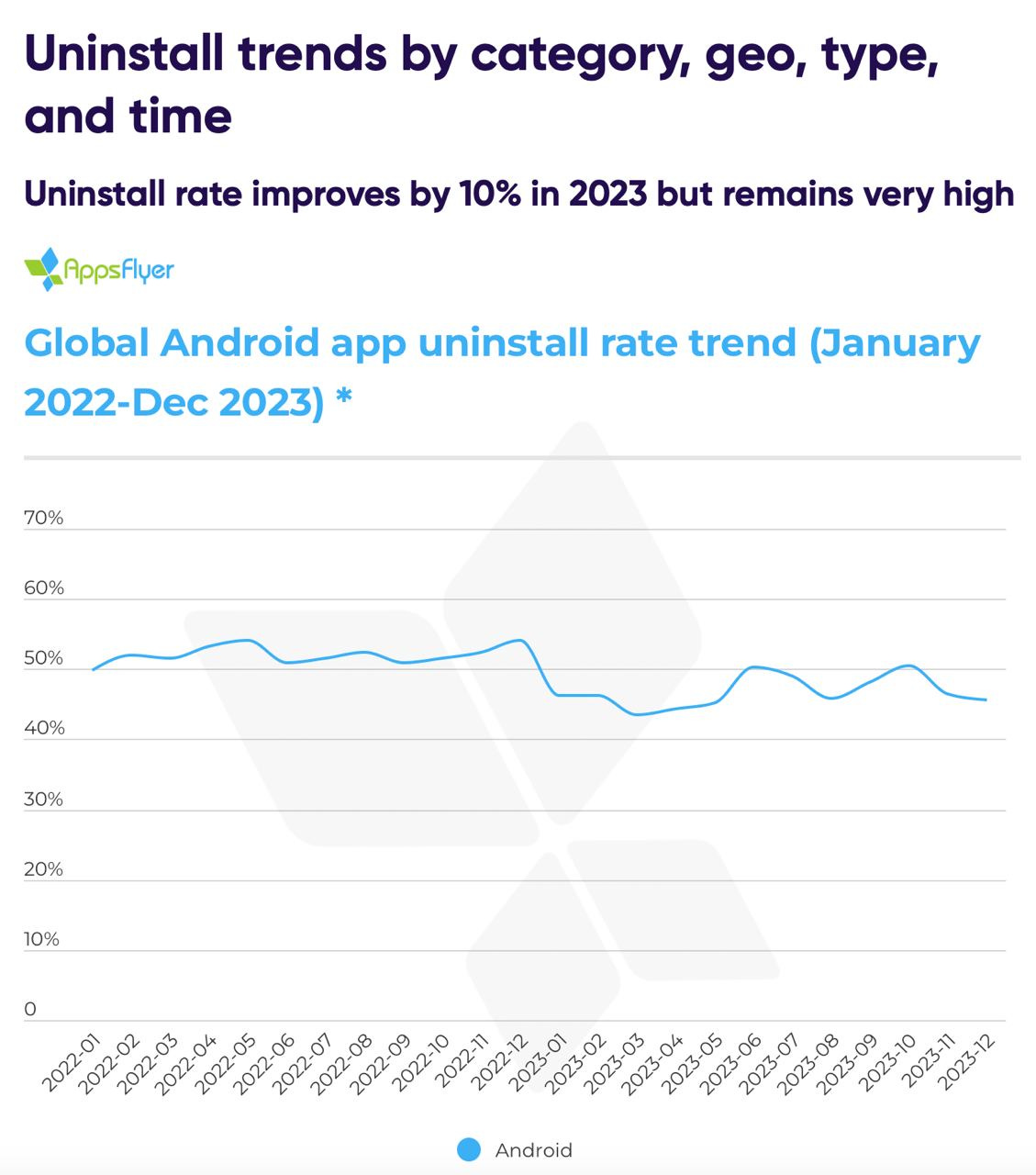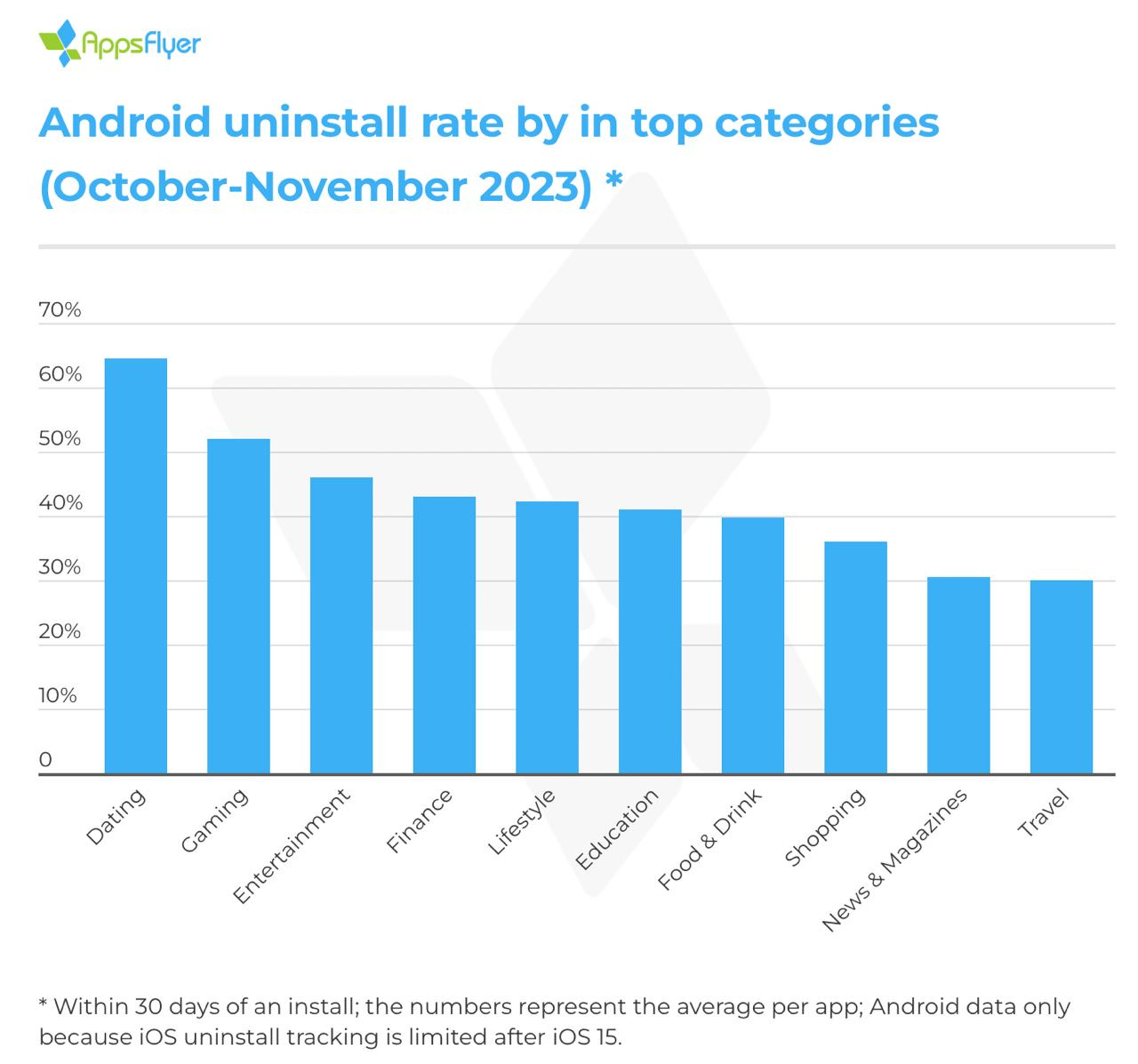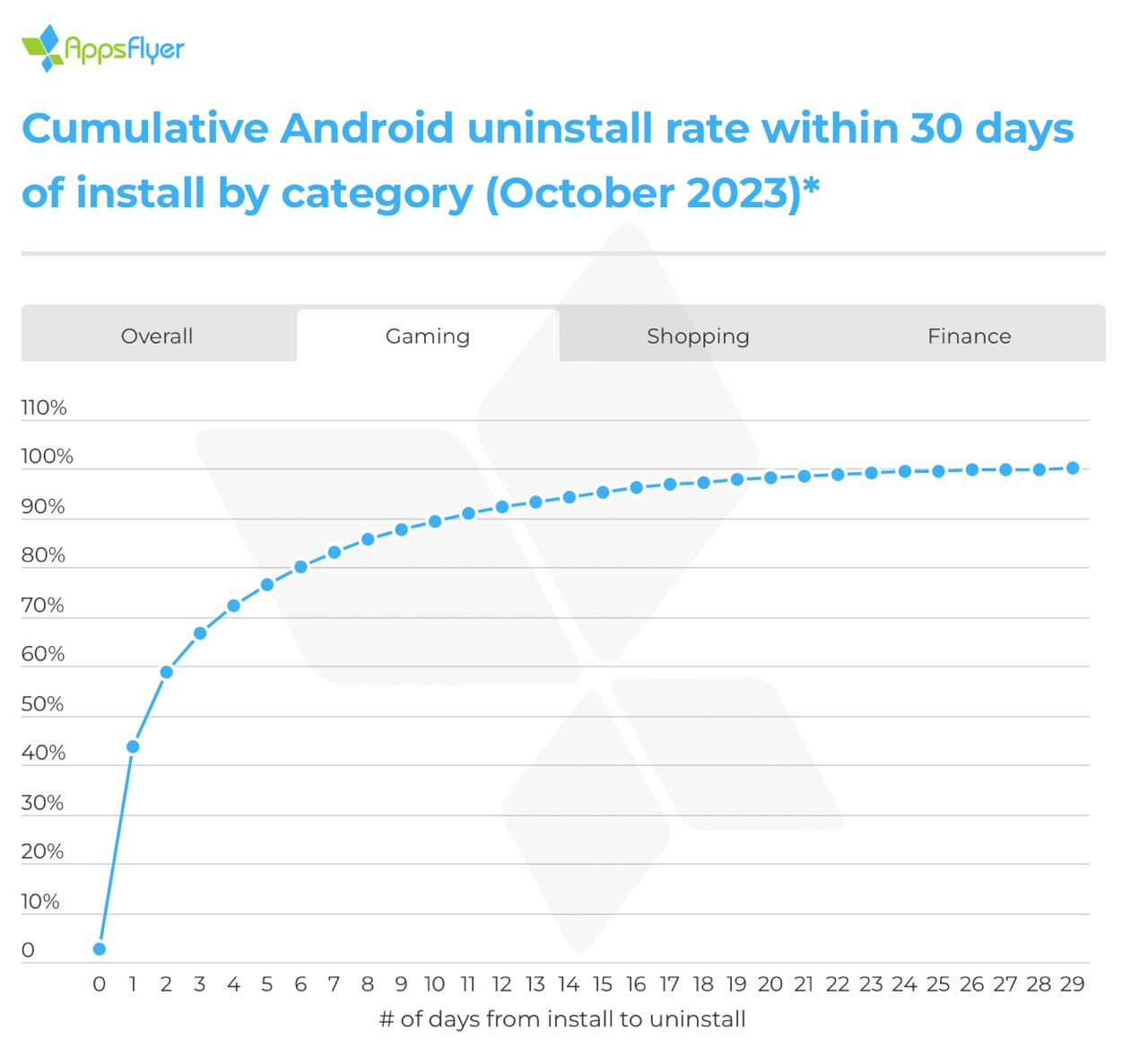 - AppsFlyer: Benchmark on Game uninstalls on Android in October-November 2023