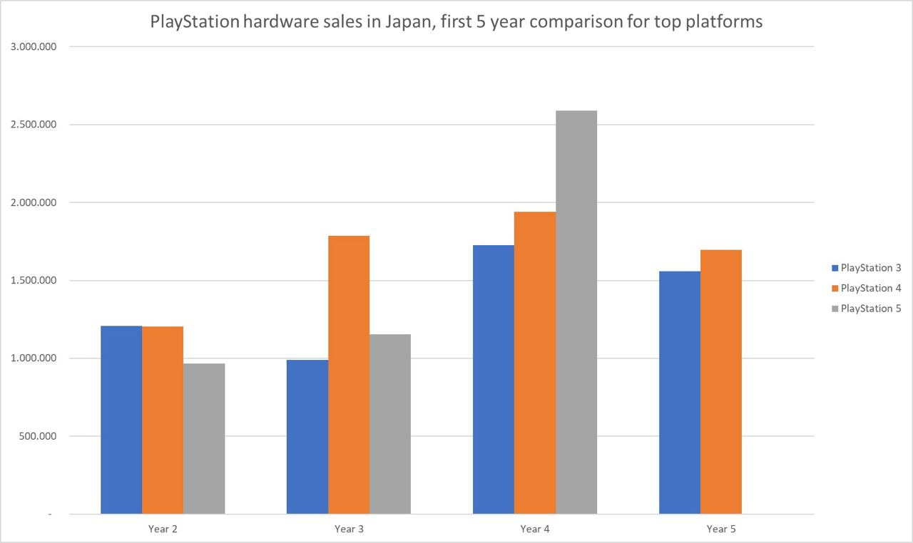 - In its fourth year on the market, PS5 managed to surpass PlayStation 4 in Japan in annual sales. However, the cumulative sales of PS4 are still higher (5.8 M over 4 years compared to 4.95M for PS5).