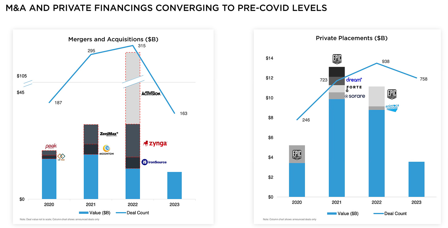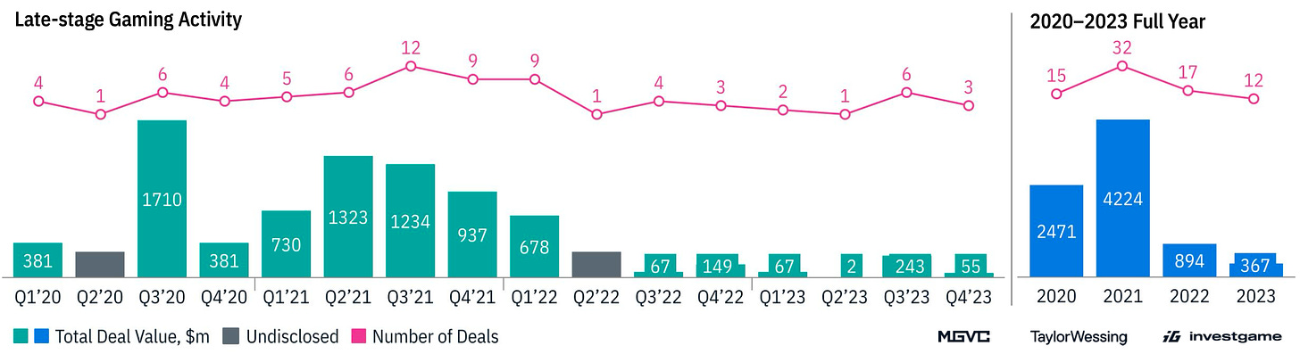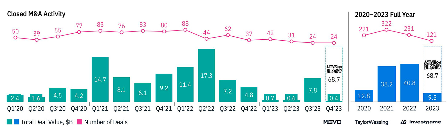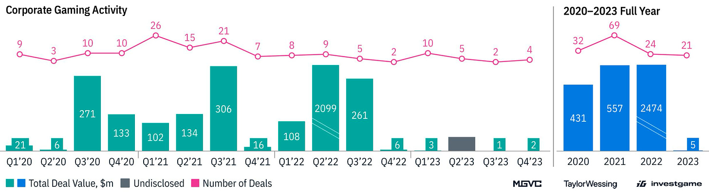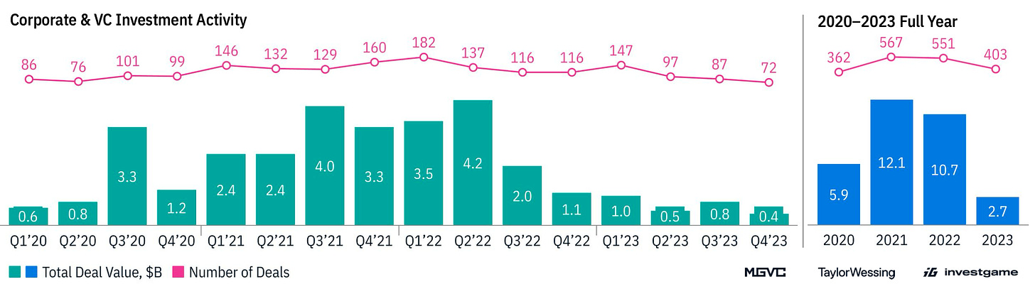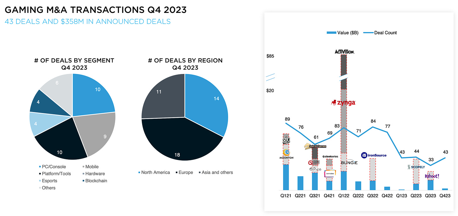 Moreover, in January 2024 alone, two major deals occurred - a $1.5 billion transaction between Disney and Epic Games; and a $110 million round for Build a Rocket Boy.
