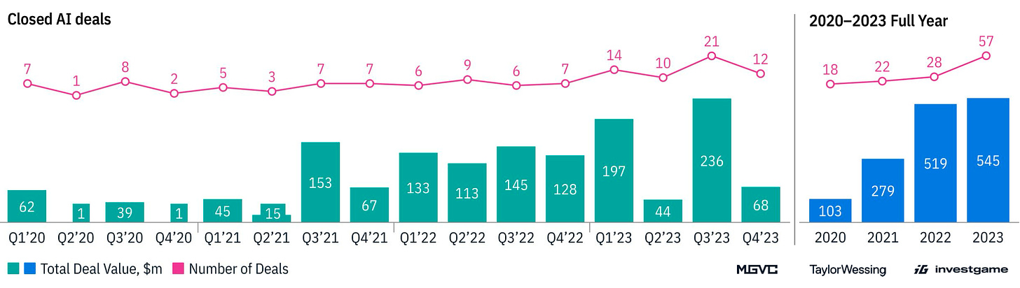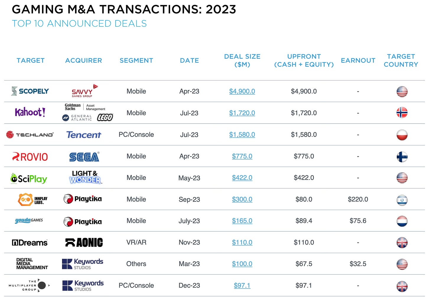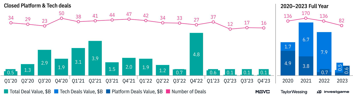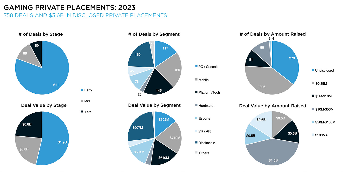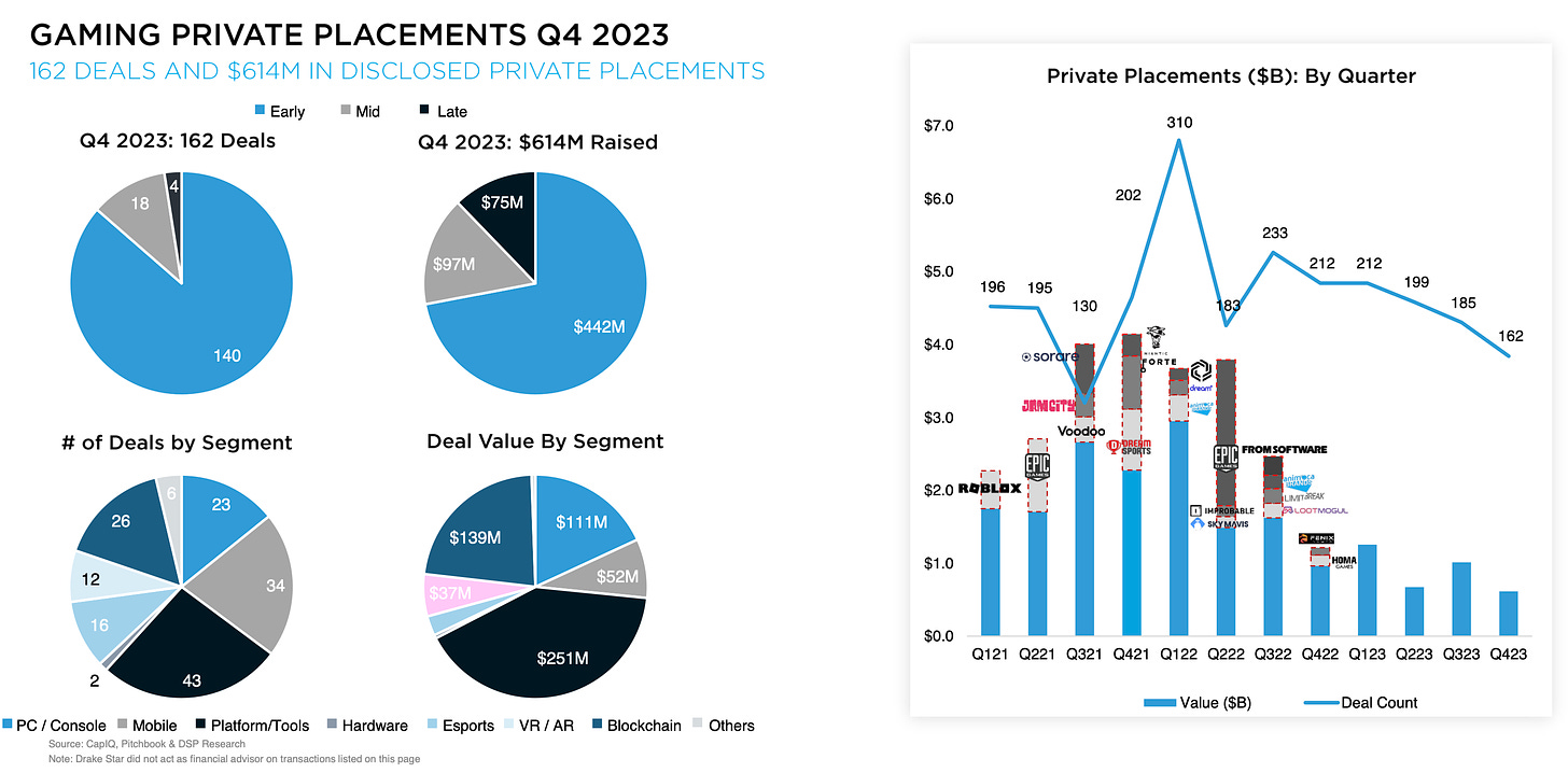 Moreover, in January 2024 alone, two major deals occurred - a $1.5 billion transaction between Disney and Epic Games; and a $110 million round for Build a Rocket Boy.