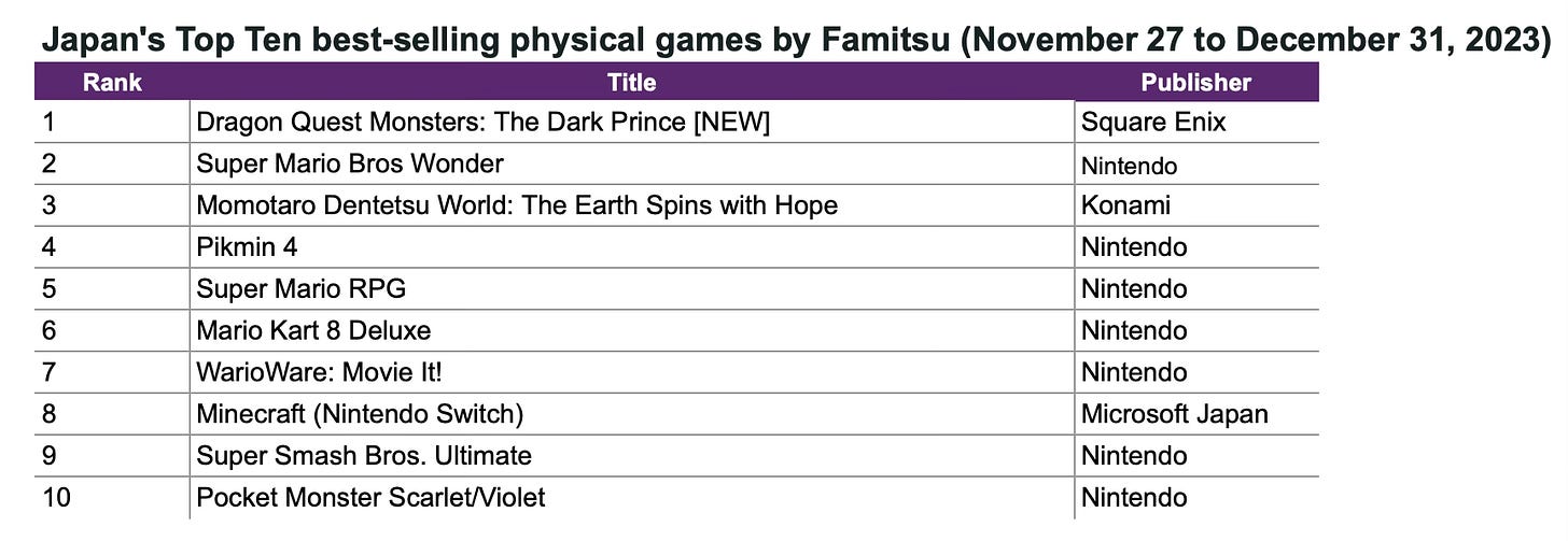 - Dragon Quest Monsters: The Dark Prince became the leader of Japanese charts in December 2023