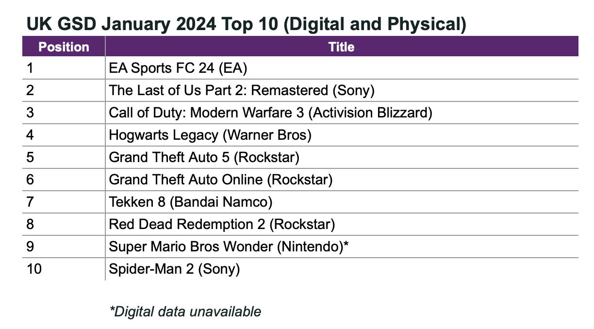 - GSD & GfK: Game Sales dropped in January 2024 in the UK